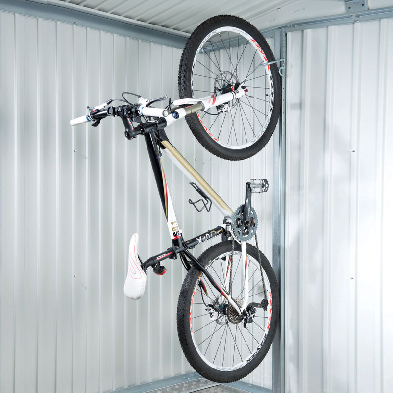 Suport bicicletă Highline. Dacă aveți o bicicletă și vă doriți pentru ea un suport din gama Highline, acesta este ideal pentru a o ține în cele mai bune condiții. Cu suportul pentru biciclete bikeMax vă puteți depozita bicicletele cu o dimensiune de până la 29 de inchi, dimensiune roată, într-un mod care economisește spațiu în magazie. Cârligul de agățare este, de asemenea, reglabil în înălțime în 8 direcții. În plus, un ochi de blocare pentru încuietori este deja integrat. Acest suport este fabricat din oțel galvanizat și are un finisaj mat.