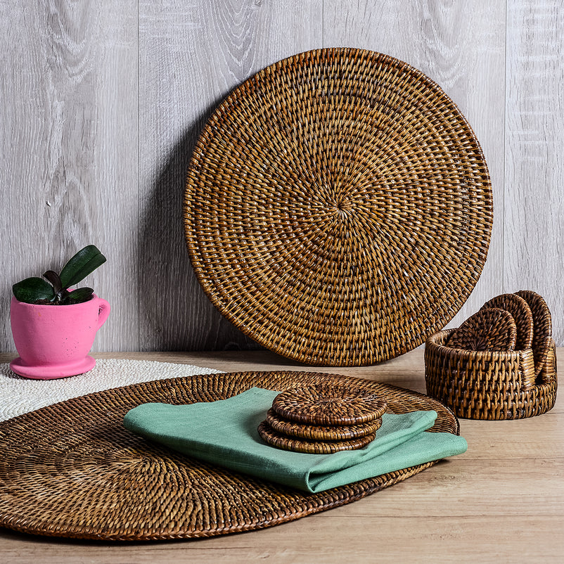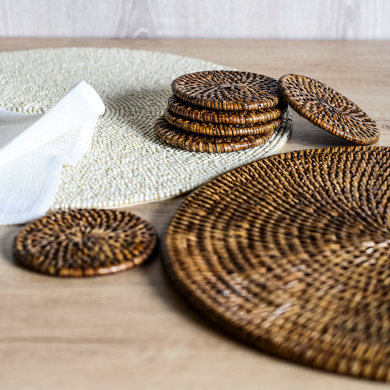 Set 6 suporturi pahare Artesia. Pentru a evita petele circulare apărute pe fața de masă sau chiar direct pe masă, oferiți-le membrilor familiei sau oaspeților posibilitatea de a își așeza paharele pe unul dintre aceste suporturi realizate din ratan natural.