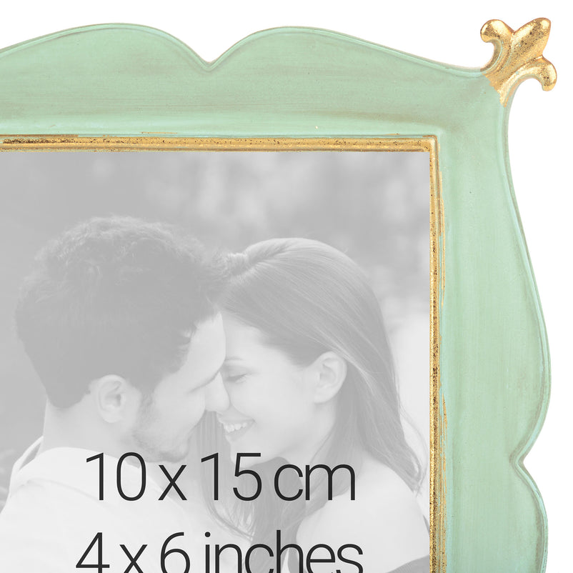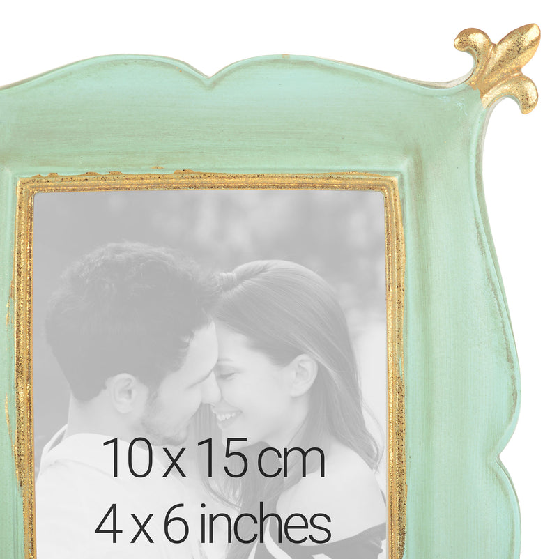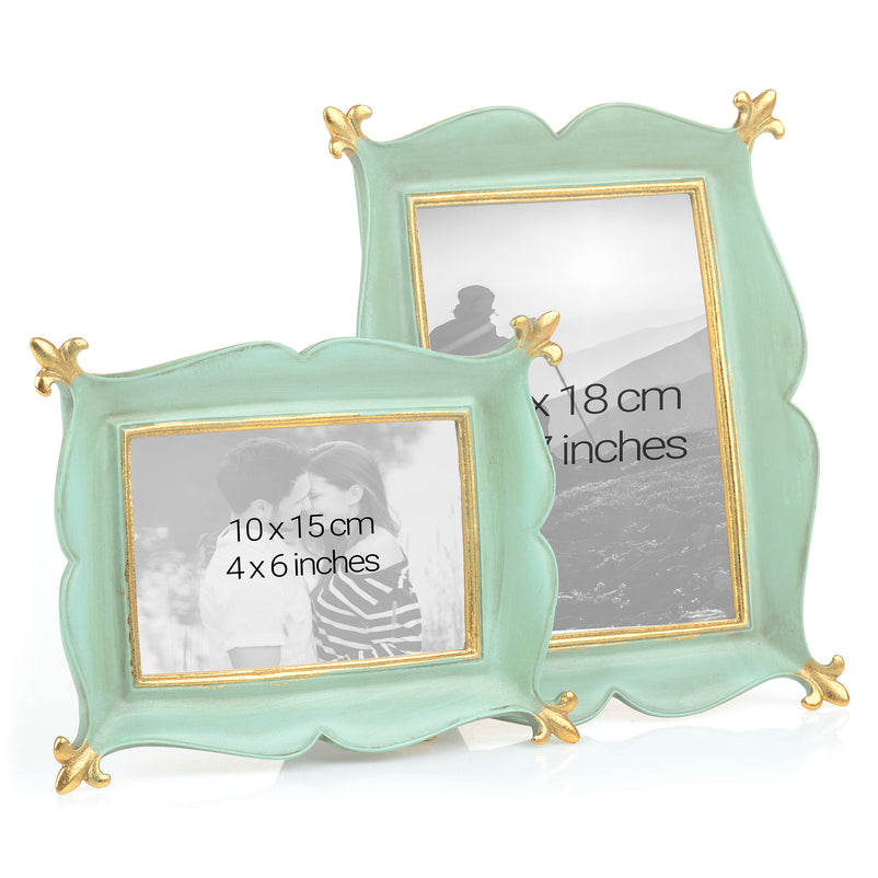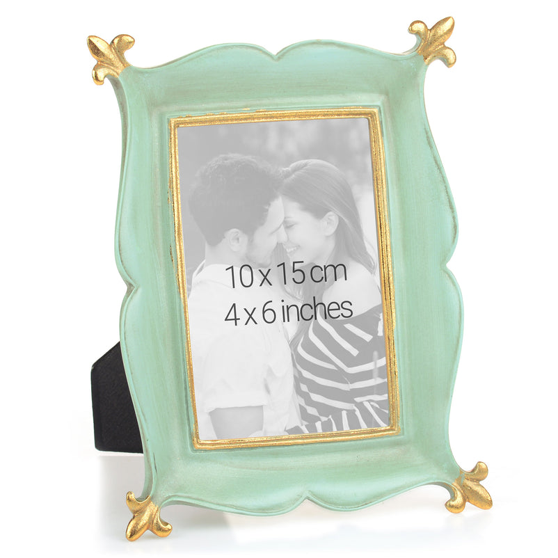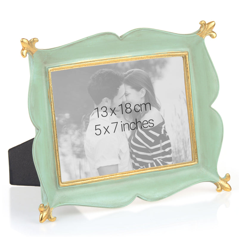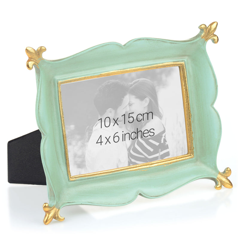 Ramă foto Alysa. Un accent colorat și estetic pentru spațiul vostru, rama foto Alysa reprezintă alegerea perfectă pentru o amenajare personalizată. Rama este realizată din polirășină și colorată în verde, cu detalii aurii.