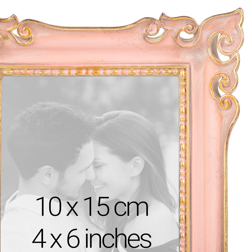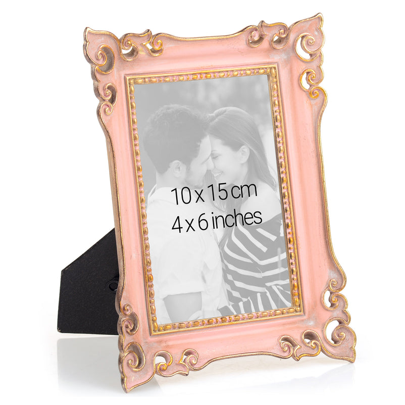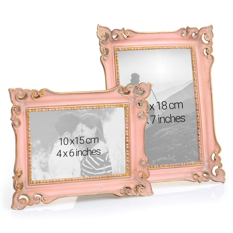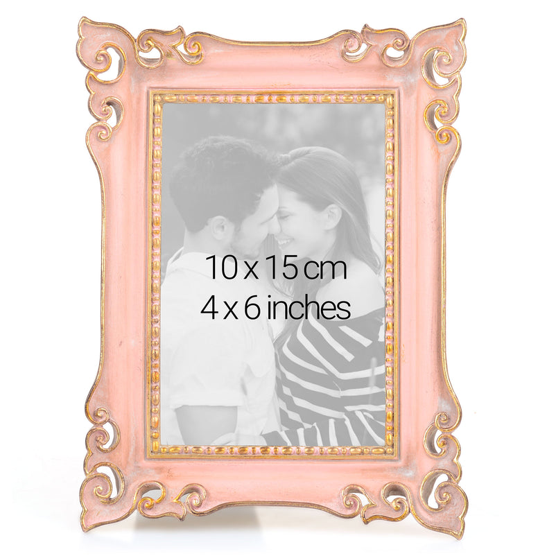 Ramă foto Adelinne. Un accesoriu deosebit pentru spațiul vostru, rama Adelinne reprezintă alegerea perfectă pentru personalizarea acestuia cu amintiri frumoase. Realizată din polirășină, este colorată în roz și auriu.