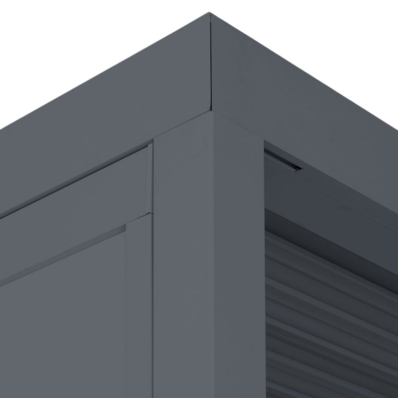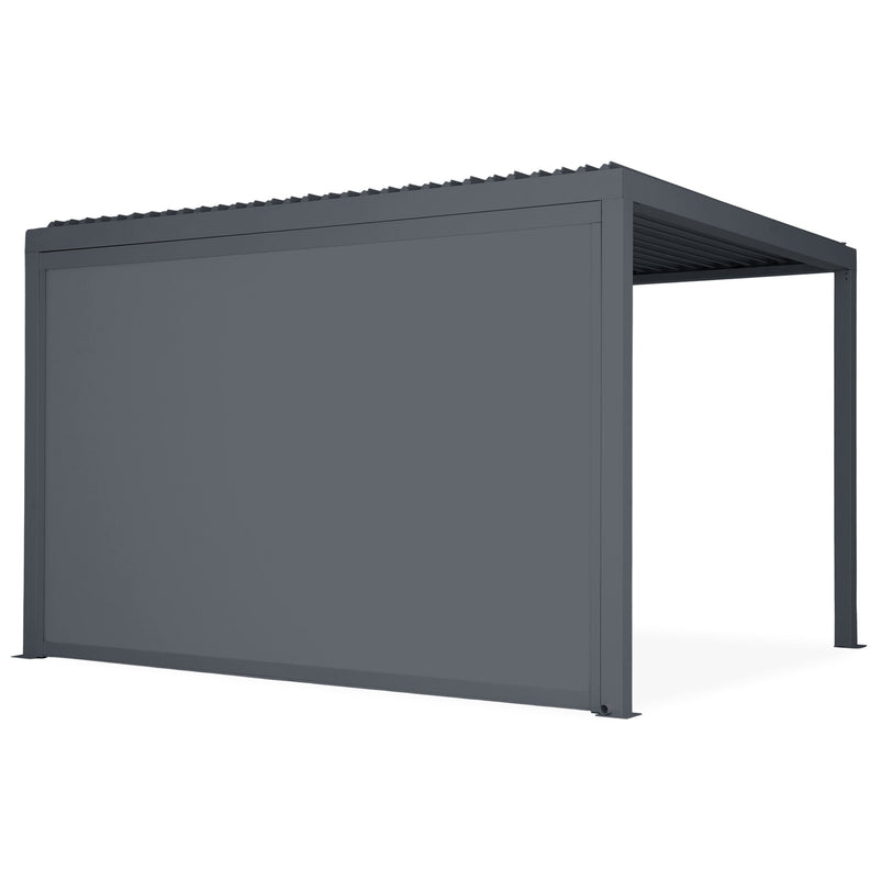 Rulou electric pavilion Summer Bella. Realizat din structură solidă de aluminiu vopsită în câmp electrostatic și textilină fină cu protecție UV. Acționat electric, prevăzut cu telecomandă. Prețul afișat nu include și pergola din imagini; aceasta se poate achiziționa separat.