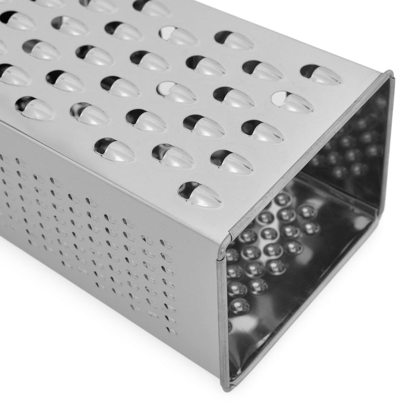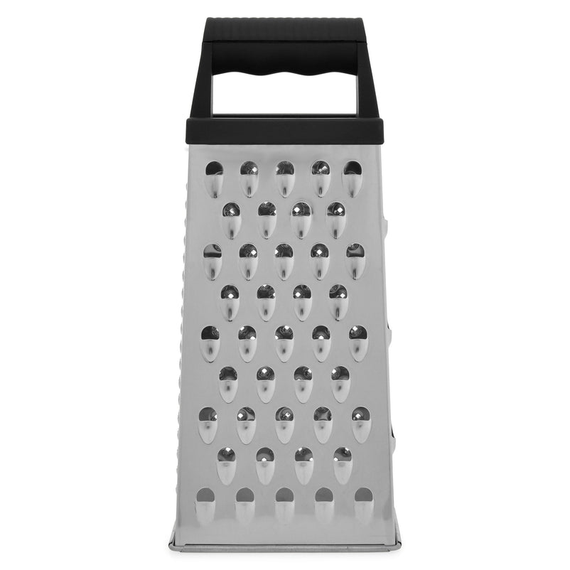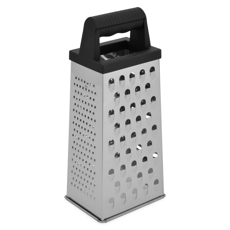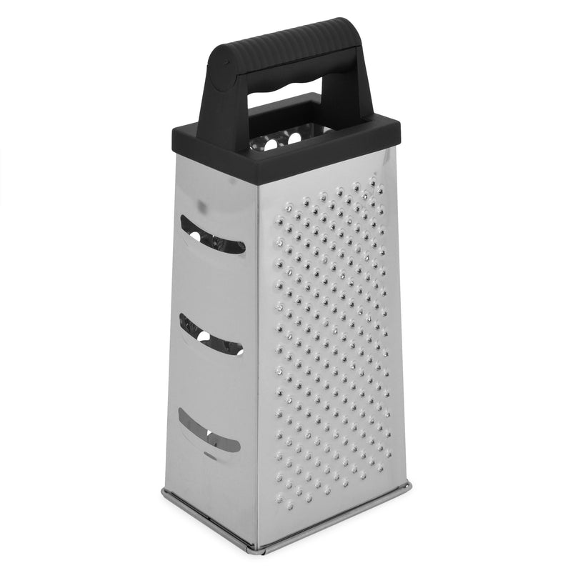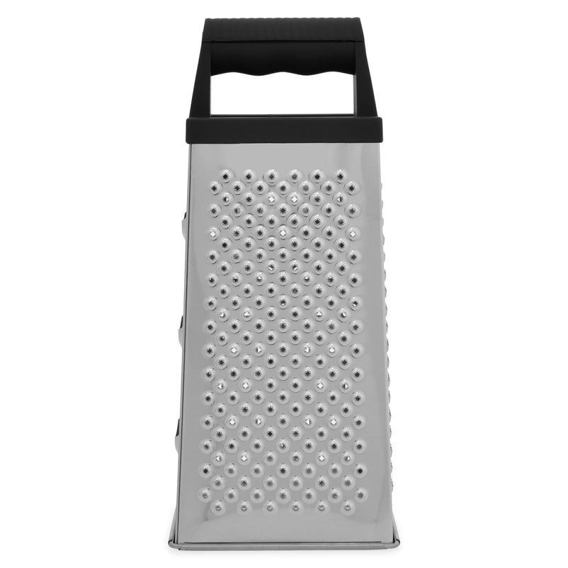 Răzătoare Essentials. Echipată cu un mâner robust și ergonomic pentru o aderență excelentă, răzătoarea Essentials dispune de 4 suprafețe diferite pentru răzuit și feliat, toate cu lame ascuțite din oțel inoxidabil. Indiferent că pregătiți salate, sosuri, deserturi, garnituri sau alte preparate, veți rezolva rapid orice sarcină, folosind panourile pentru răzuit fin sau grosier.