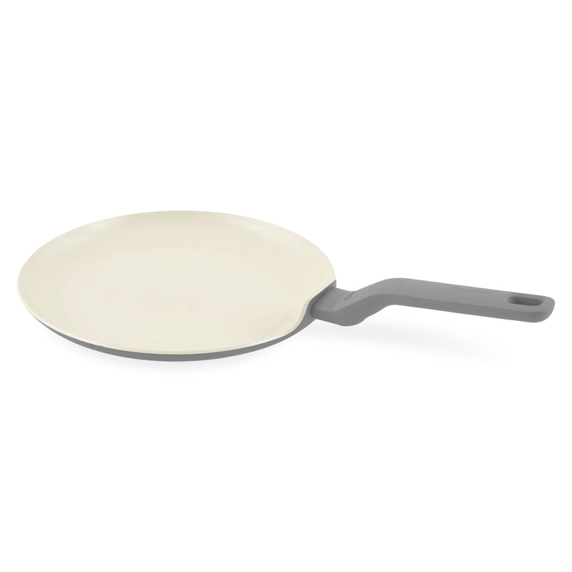 Tigaie clătite Balance. Iarna, vara, dimineața sau după-amiaza, clătitele sunt întotdeauna o idee bună! Cu această tigaie pentru clătite din aluminiu 100% reciclat, poți face cele mai delicioase clătite sau crepe pe tot parcursul anului pe orice tip de plită, inclusiv cu inducție. Tigaia este echipată cu un înveliș ceramic antiaderent de înaltă calitate, durabil și sănătos, care vă permite să gătiți cu puțin ulei sau fără ulei și asigură o dezlipire ușoară a alimentelor, precum și un mâner care rămâne rece care oferă o prindere sigură și confortabilă. Conduce căldura rapid și uniform pentru gătit eficient din punct de vedere energetic. Ușor de curățat. Mâner rece pentru un plus de confort și siguranță. Potrivit pentru toate plitele de gătit, inclusiv cu inducție. Baza crestată care permite grăsimii să scape cu ușurință. Permite alimentelor să fie gătite încet, sigilând sucurile din carne, păsări, fructe de mare, pește și legume. Fabricată din aluminiu reciclat. Acoperire antiaderentă CeraGreen ceramică 100% durabilă și sănătoasă.