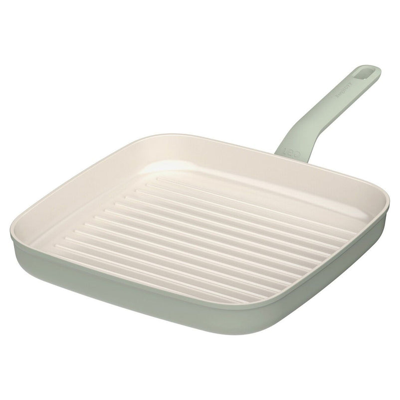 Tigaie grill, aluminiu Balance. Fabricată din aluminiu reciclat 100%, robust și ușor, poate fi utilizată pe orice tip de aragaz, inclusiv pe inducție. Mânerul stay-cool al tigăii asigură o prindere confortabilă și sigură, în timp ce liniile de grătar în relief lasă urmele caracteristice și permit scurgerea ușoară a grăsimii și umezelii, obținând astfel un rezultat extrem de crocant. Un alt avantaj este acoperirea ceramică antiaderentă de înaltă calitate, durabilă și sănătoasă, care garantează o desprindere ușoară a alimentelor și o curățare rapidă și simplă.