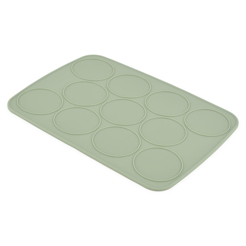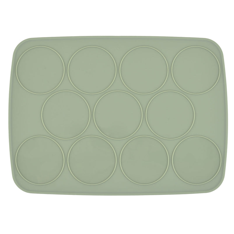Suport prăjituri Balance. Covorașul de coacere pentru prăjituri din silicon pe două fețe face biscuiții perfect uniformi și perfect distanțați de fiecare dată și se potrivește perfect în tava noastră mică pentru prăjituri. Cercurile sunt ghidul perfect pentru dimensiunea aluatului de prăjituri: cercuri de dimensiuni mici pe o parte și cercuri de dimensiuni mai mari pe cealaltă parte a covorașului. Fursecurile tale se vor coace uniform și se vor aluneca direct de pe tavă, fără a folosi uleiuri sau hârtie de copt. Ușor de curățat. Materialul asigură o coacere uniformă. Covoraș din silicon antiderapant. Se potrivește perfect în tava mică pentru biscuiți. Cercuri pentru un control ușor al porțiilor.