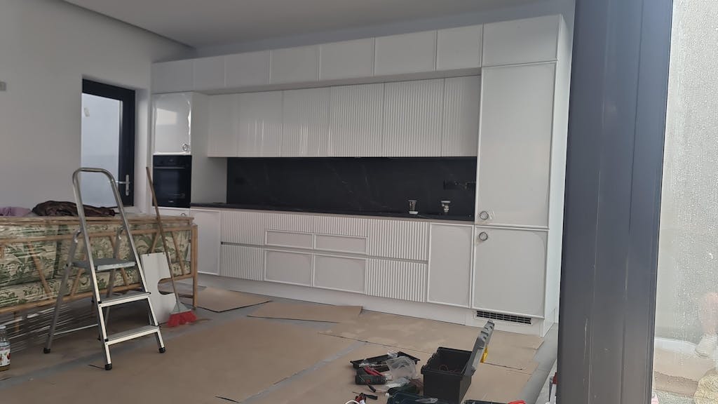 Electrocasnicele și elementele de decor nu sunt incluse în prețul bucătăriei. În cazul achiziționării aparatelor electrocasnice din oferta Mobexpert, decupajul pentru încastrarea acestora este Gratuit.