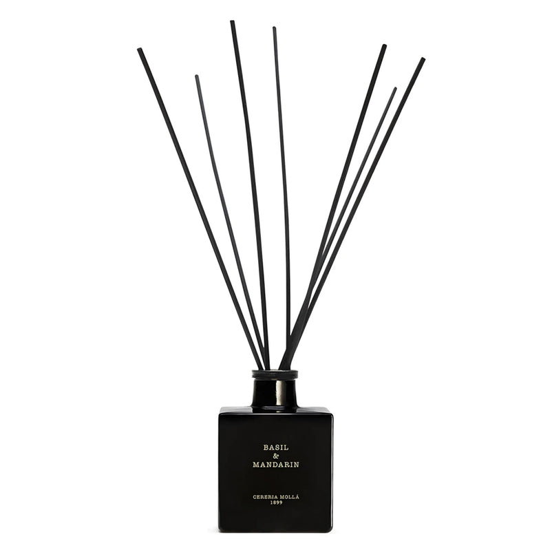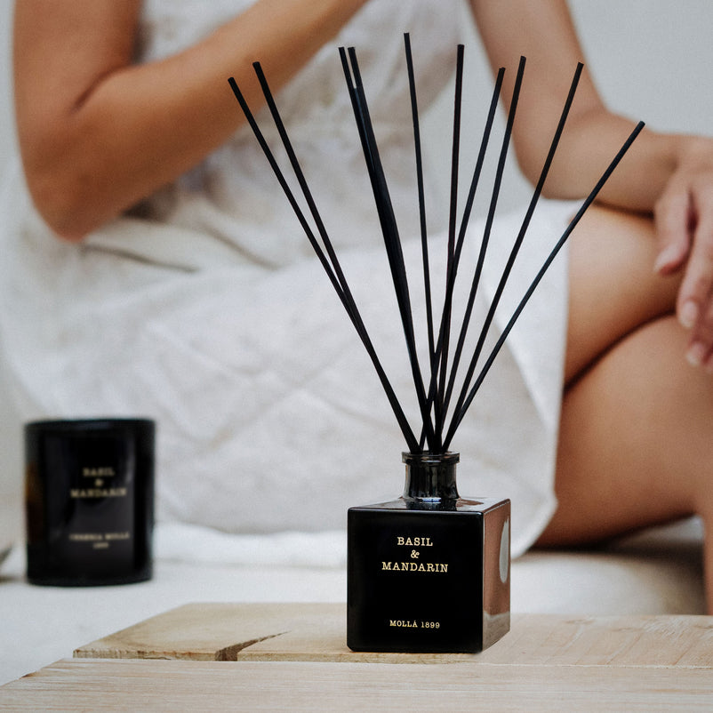 Difuzor parfum cameră Cereria Molla. Parfumul oferă un amestec inițial de acorduri energice de note citrice de lămâie, lime și mandarină, însoțit de o aromă florală predominată de iederă și iasomie albă, cu un final seducător datorită notelor sale orientale lemnoase.