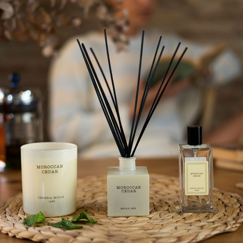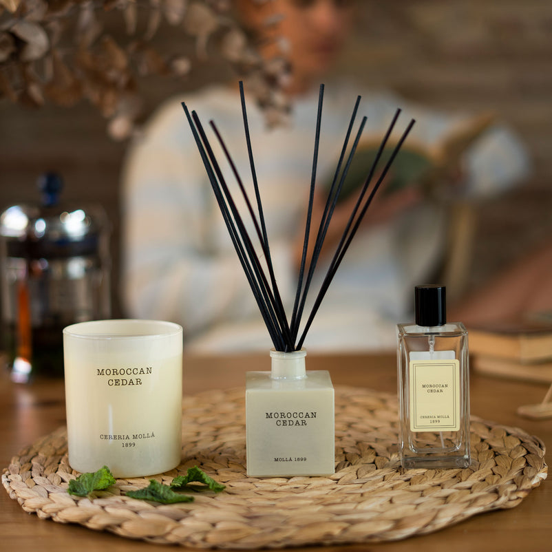 Lumânare parfumată Cereria Molla. Moroccan Cedar ne duce în Mediterana africană, unde curțile arabe ne învăluie cu aroma sa caracteristică de lemn de cedru și un fundal oriental dulce. Moroccan Cedar este un ceai la mijlocul după-amiezii în mijlocul desertului.
