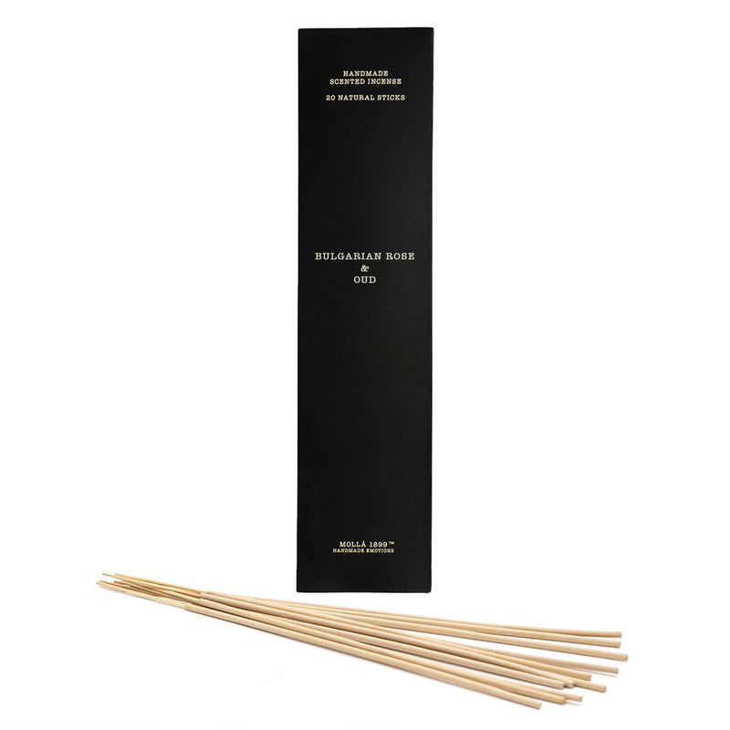 Set 20 bețișoare parfumate Cereria Molla. Pachetul conține 20 bețișoare parfumate, realizate din bambus 100%. Aroma: Bulgarian Rose & Oud este un parfum dulce și catifelat. Este o aromă naturală și moale care conferă distincție oricărui mediu. Bulgarian Rose & Oud este o îmbrățișare în miezul nopții.