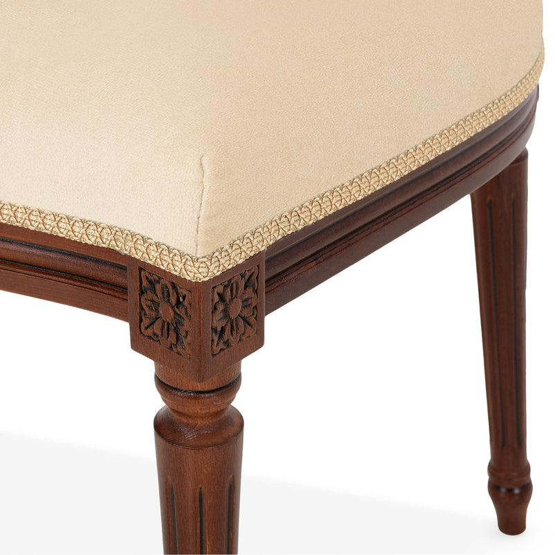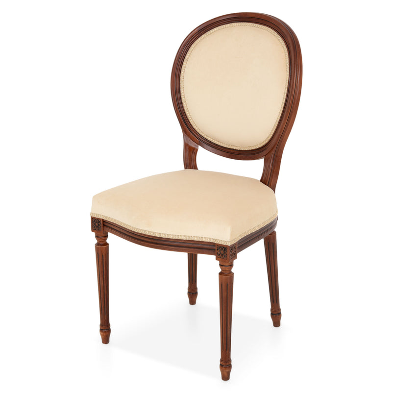 Scaun Chance. Scaunul din gama Chance este o alegere elegantă pentru diningul vostru. Scaunul este confecționat din lemn masiv de fag, iar designul este unul cu totul rafinat. Stofa, împreună cu lemnul vopsit cu elemente albe și ornamente deosebite vor aduce un plus de stil în orice interior. Confortul este un alt punct forte, scaunul îmbinând funcționalitatea cu estetica.