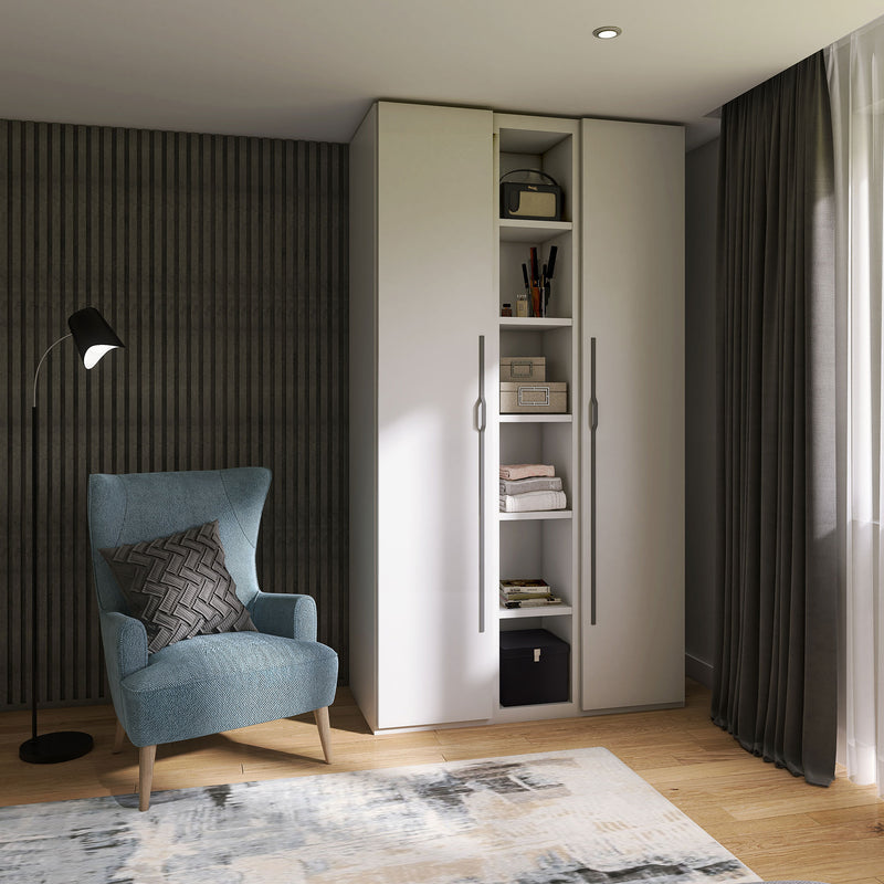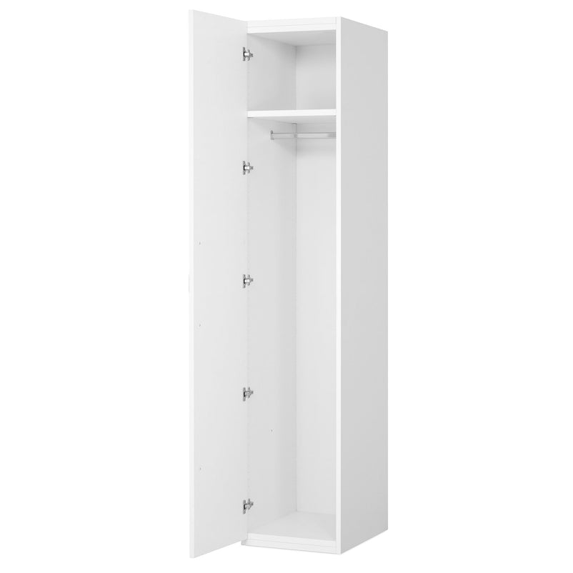 Dulap 1 ușă Compact. Corp componibil care face parte din ansamblul dressing Compact. Acesta poate fi achiziționat ca un dulap independent sau poate fi încadrat într-o compoziție de dressing. Personalizați-vă propriul dressing și veți obține un spațiu bine compartimentat, pentru o garderobă la îndemână, organizată și ordonată. Alegeți să vă construiți un dressing fără uși, deschis și aerisit, sau puteți opta pentru un dressing cu uși batante. Ușile pot fi montate reversibil, cu deschidere stânga sau dreapta.