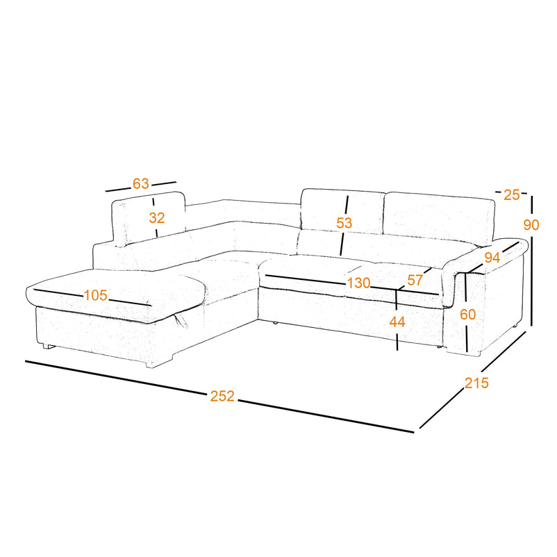DUNE Colțar extensibil, cu șezlong stânga/dreapta, ladă depozitare, mecanism tetiere, stofă