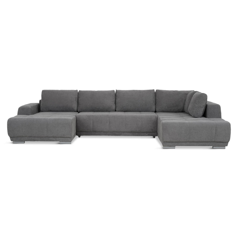 Ansamblu colțar extensibil stânga/dreapta, stofă Monza. Aspectul modern și culoarea recomandă ansamblul din gama Monza o alegere ideală pentru amenajarea spațiului din livingul vostru. Colțarul este tapițat în stofă moale, material calitativ și rezistent, iar designul modern va accentua stilul decorativ al încăperii voastre și se va integra cu ușurință în decoruri dintre cele mai diverse. Ansamblul este extensibil, putând fi transformat în pat, iar dimensiunile generoase vă vor îmbia la relaxare și odihnă.