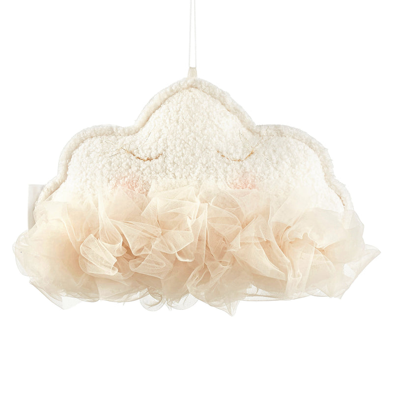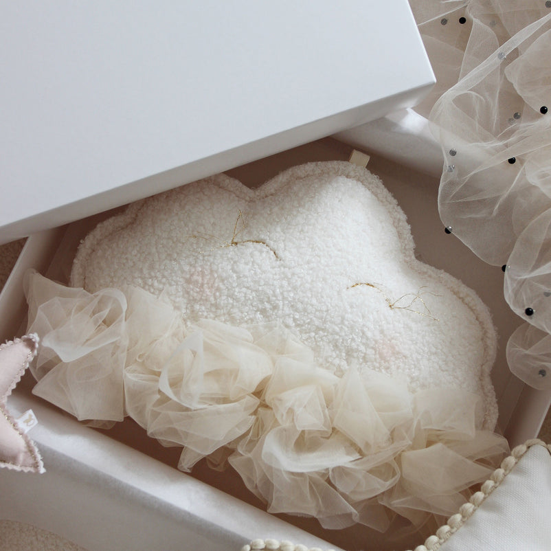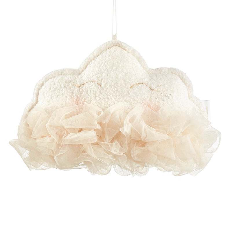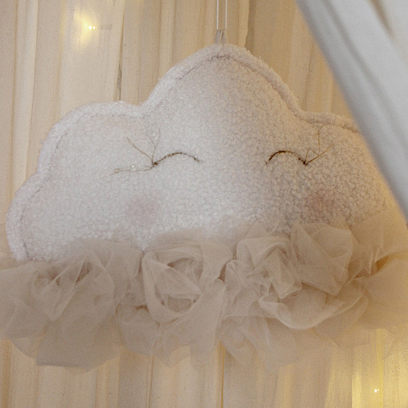 Pernă decorativă Cosy&Soft. O decoratiune fabuloasă în formă de nor, va încânta orice copil. O pernă cu dublă față care se poate agăța deasupra patului bebelușului, lângă baldachin sau la fereastră. Un nor pufos și buclat, cu ochii închiși zâmbind brodați manual și marginile din tul luxos, îl va fermeca pe cel mic și îl va invita să zboare pe aripile somnului. Este realizată din 69% bumbac, 31% poliester și umplută cu bile de poliester.