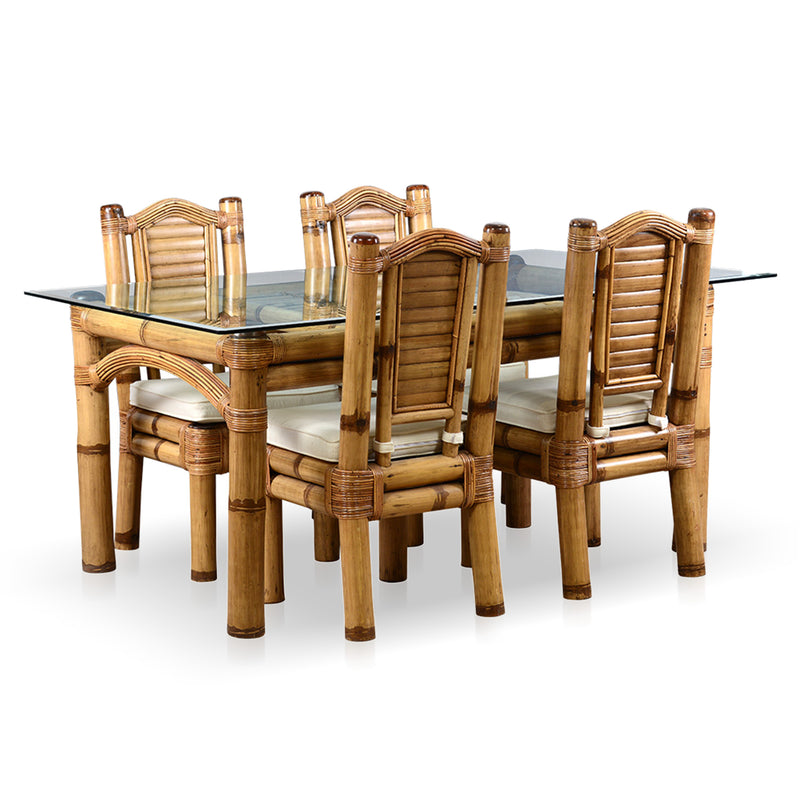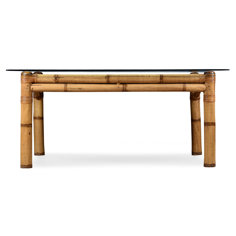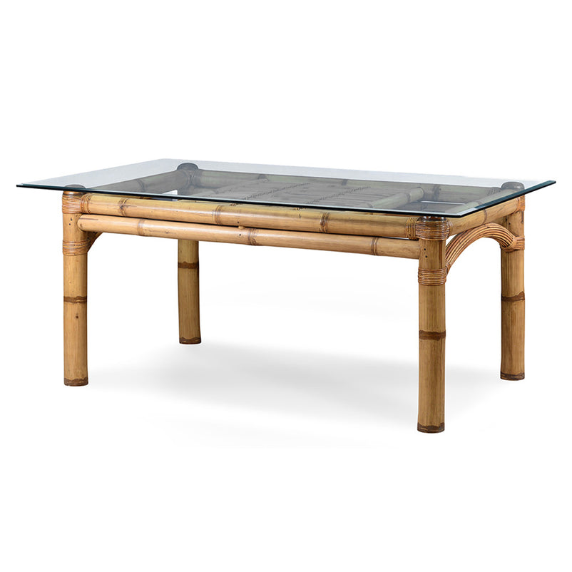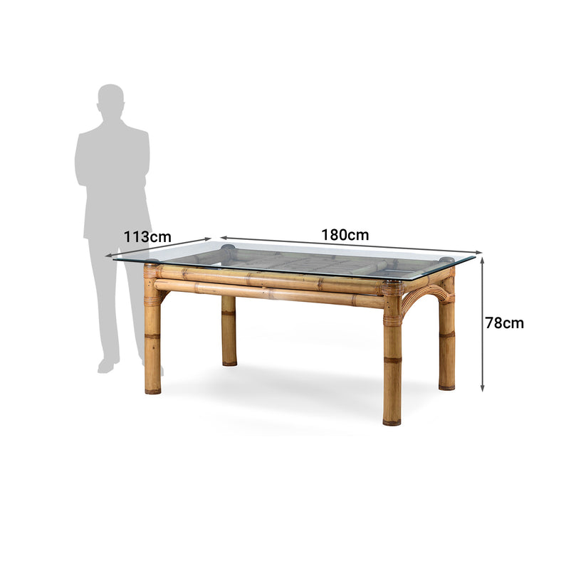 Masa Kona. Aerului rustic al lemnului de bambus ii este adaugata o doza de modern cu ajutorul blatului din sticla securizata, facand astfel din masa Kona o alegere perfecta pentru un living amenajat intr-un stil aerisit, in care funcționalitatea se imbina perfect cu aspectul deosebit.