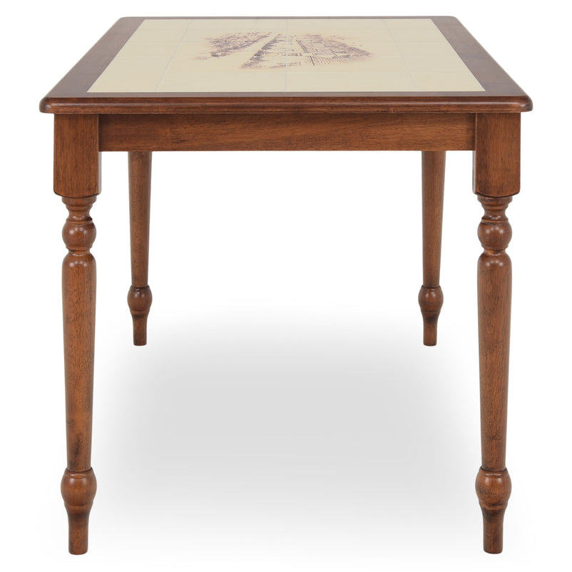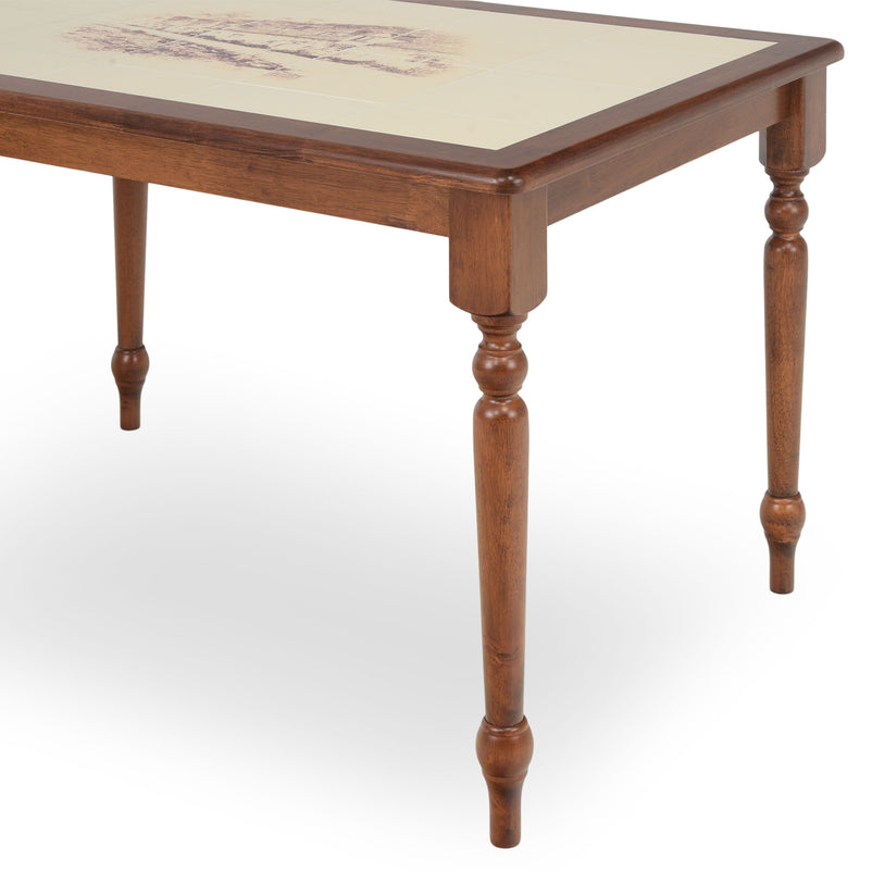 Masă Village. Schimbați înfățișarea zonei de dining de acasă cu o masă Village, care să vă ofere eleganță și un aspect estetic deosebit. Construită din lemn și faianță, masa este o piesă de mobilier cu stil care vă va îmbogăți decorul. Picioarele sale sunt subțiri și sculptate creativ pentru a ieși cu ușurință în evidență în orice context.