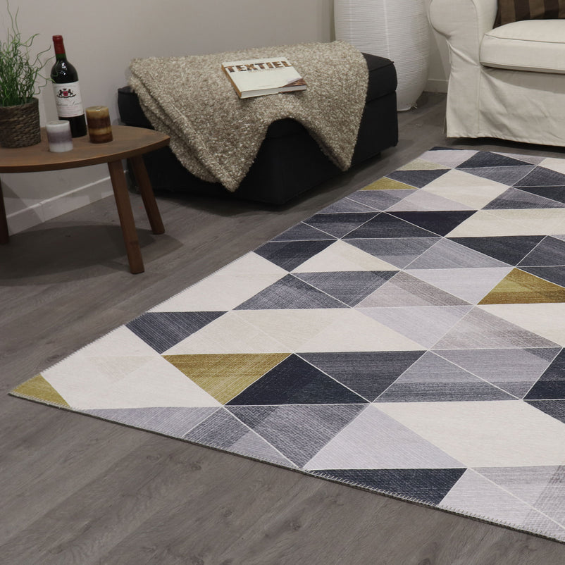Covor cameră Fenix. Adăugați un plus de stil și culoare spațiului interior de acasă, integrând acest covor de cameră Fenix care emană creativitate și eleganță din orice colț l-ați privi. Designul interior de acasă se poate îmbunătăți pe măsură cu acest covor care captează atenția prin formele geometrice, acestea mixându-se frumos cu cromatica încântătoare. Acesta este confecționat în integralitate din poliester, finisajul țesut mecanic oferindu-i rezistență.