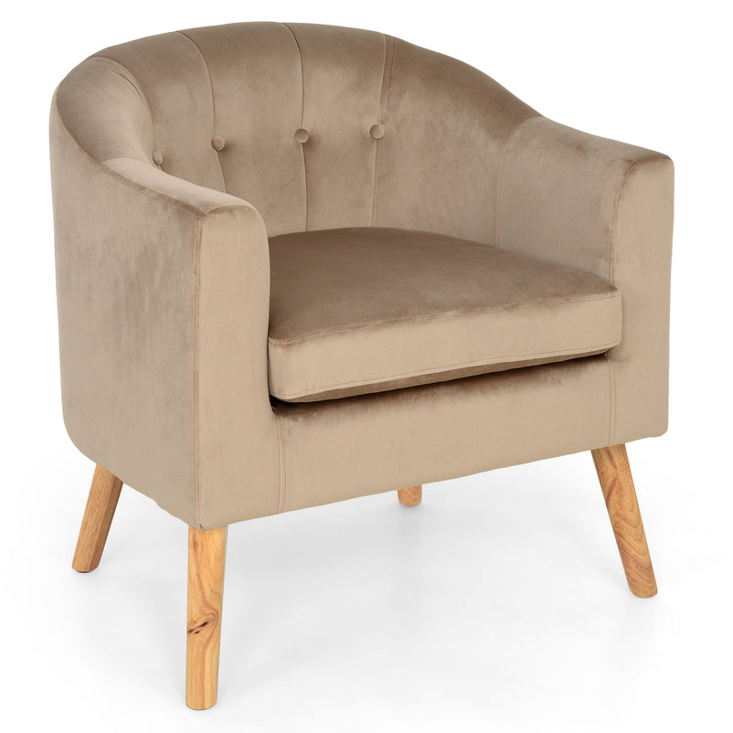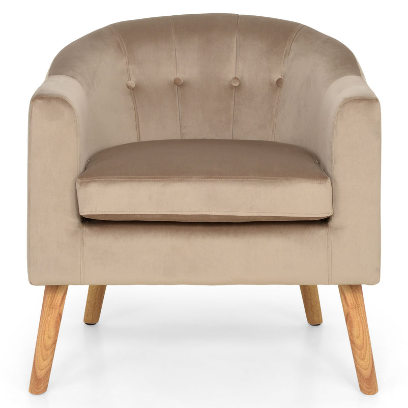 Fotoliu, stofă Erba. Modern și elegant, fotoliul Erba redă confortul mult dorit din livingul vostru. Designul este realizat în linii simple și forme generoase, fiind tapițat în stofă, material rezistent și rafinat. Alăturarea materialului în nuanțe de verde cu picioarele din lemn natur, îi conferă un aspect deosebit, ce va completa cu stil un living modern.