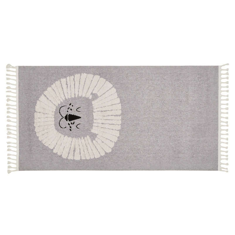 Covor cameră Lion. Covorul creează un ambient ideal pentru stimularea imaginației fiecărui copil. Realizat din materiale rezistente, acesta garantează o utilizare îndelungată. În plus, partea dorsală confecționată din iută și bumbac oferă aderență și siguranță sporită pentru cei mici.