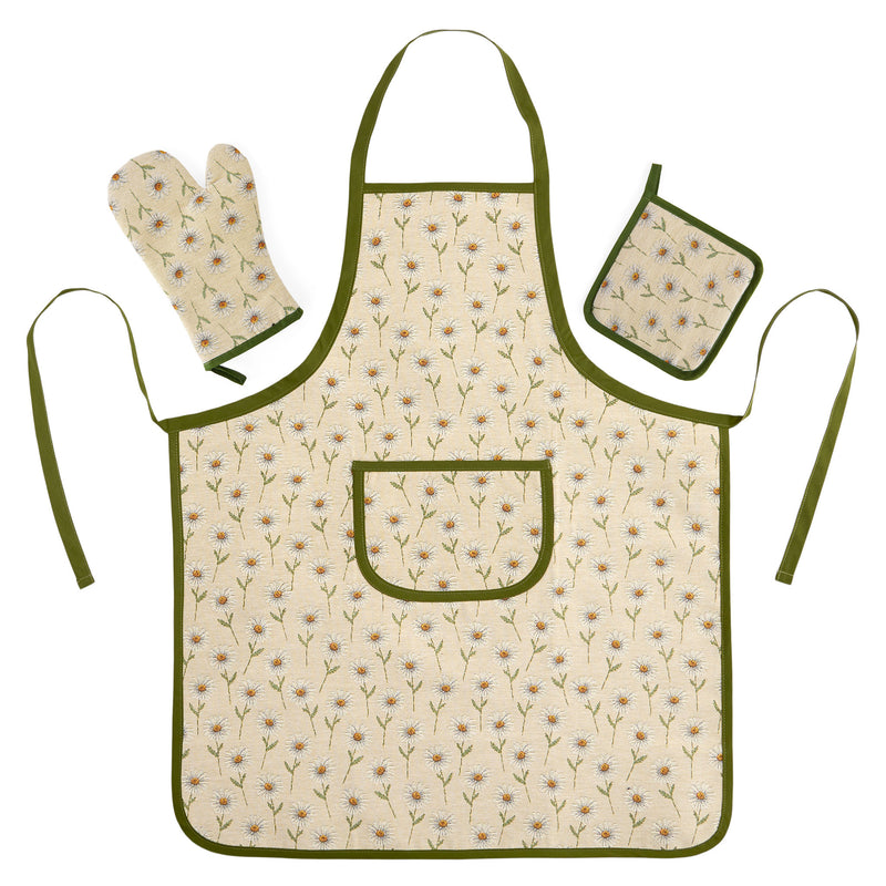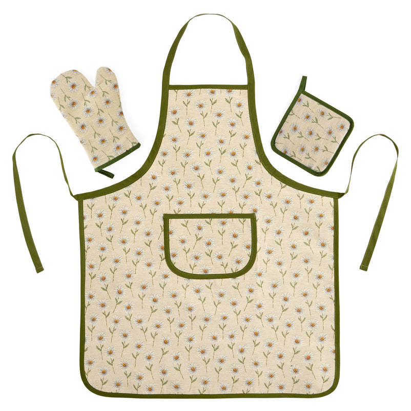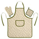 Set bucătărie 3 piese Hazel II. Setul conține: 1 șort bucătărie, 1 mănușă bucătărie, 1 suport termic oală