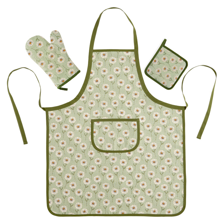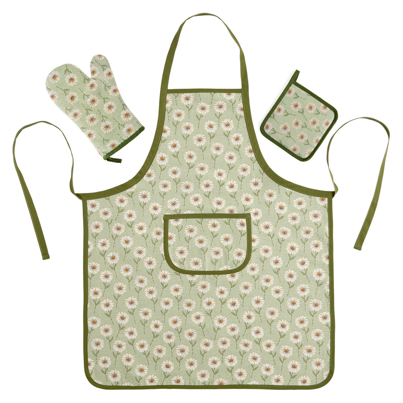 Set bucătărie 3 piese Hazel III. Setul conține: 1 șort bucătărie, 1 mănușă bucătărie, 1 suport termic oală