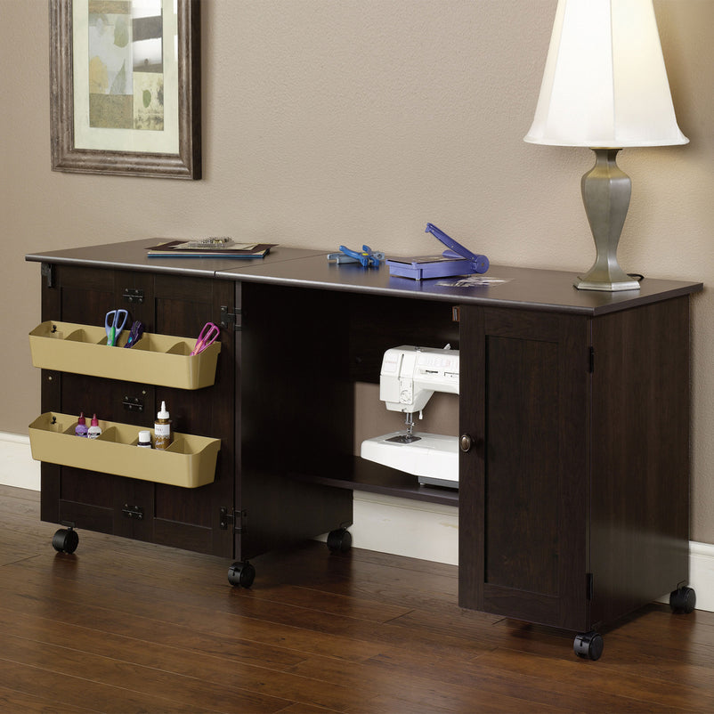 Banc de lucru Select. Caracterizat ca fiind sobru și elegant, bancul de lucru Select se potrivește într-un decor bine ales, în culori atent potrivite, pe care să îl integrați cu stil în camera voastră. Culoarea abanosului îi conferă acestuia o notă de lux, panourile aglomerate din lemn din care este realizat plasându-l ca fiind o piesă de mobilier pentru cei care își doresc schimbări în casă. Bancul de lucru are un spațiu suplimentar pentru cusut, dar și două coșuri de depozitare și un raft ascuns special pentru o mașină de cusut. De asemenea, dincolo de uși bancul de lucru are două polițe ajustabile pe care le puteți folosi cu încredere.