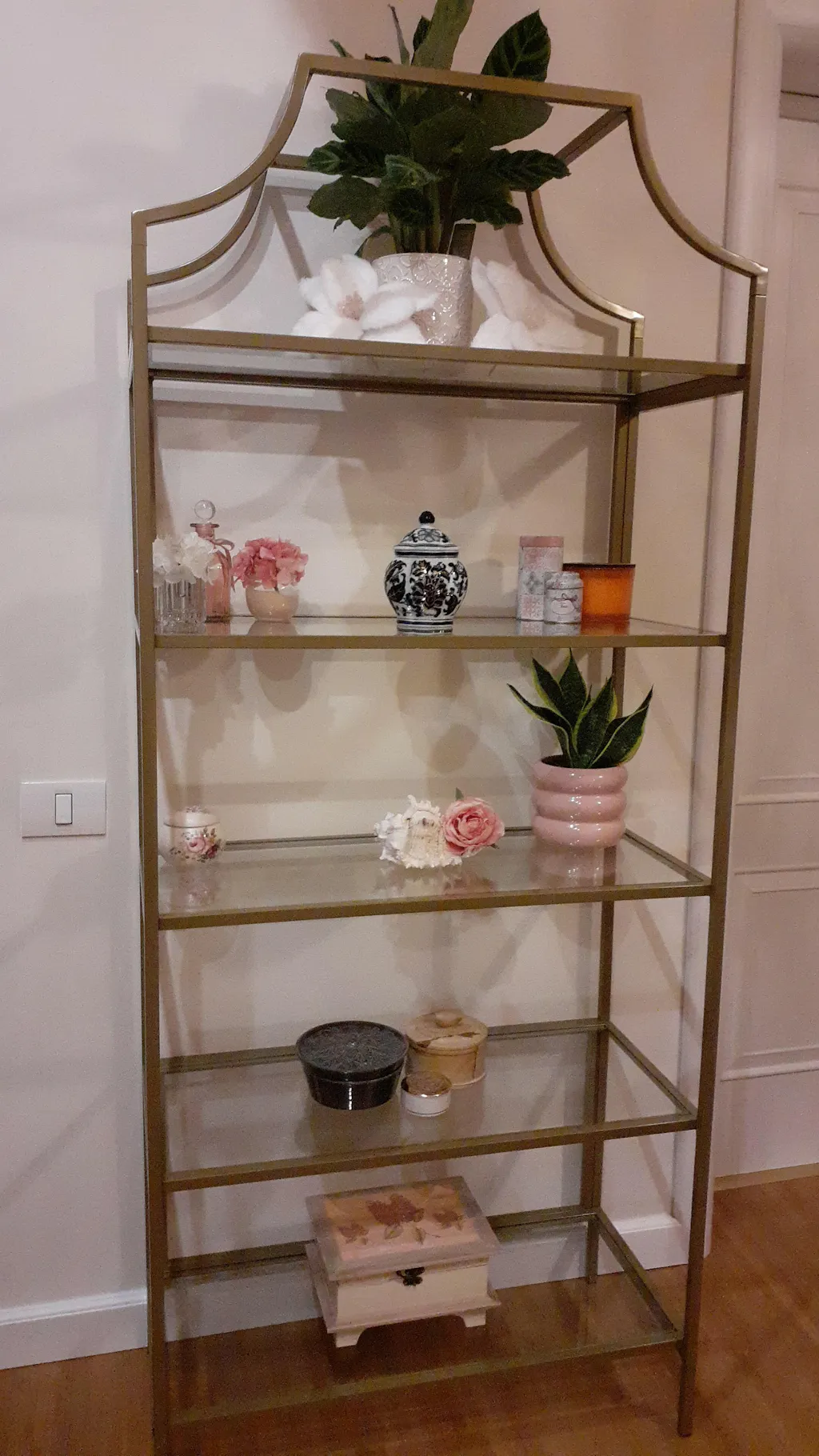Etajeră metalică Int Lux. Etajera metalica Int Lux este o piesa deosebita, gratie aspectului sau aparte si functionalitatii sale ridicate. Aceasta este realizata din metal, iar rafturile sunt din sticla securizata. Etajera Int Lux va deveni cu usurinta locul perfect pentru decoratiunile din incapere. Finisajul elegant o recomanda drept un element inedit, care va decora camera cu stil.