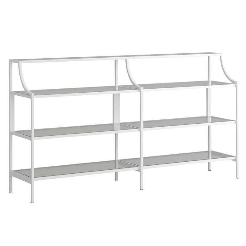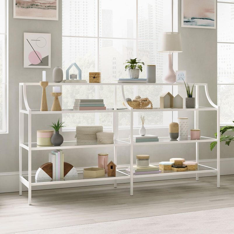 Etajeră Anda Norr. Stilul întâlnește funcționalitatea într-o piesă de mobilier care joacă atât un rol practic, cât și unul decorativ în cadrul livingului vostru. Etajera din gama Anda Norr este realizată din metal și sticlă, având o cromatică versatilă și luminoasă potrivită pentru un decor minimalist. Etajera are 4 polițe pe care puteți pune obiecte decorative pentru a da viață livingului. De asemenea, designul ușor curbat al structurii etajerei contribuie la frumusețea unei piese de mobilier minunate.