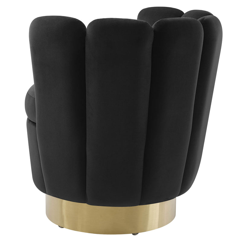 Fotoliu rotativ Zontini. Ideal pentru orice decor modern, fotoliul rotativ din gama Zontini este o piesă de mobilier elegantă, care vă asigură șederi relaxante în living. Realizat în totalitate din stofă și finisat în negru, acesta este amplasat pe un piedestal care îl face o piesă încântătoare din orice unghi l-ați privi.
