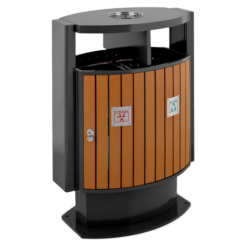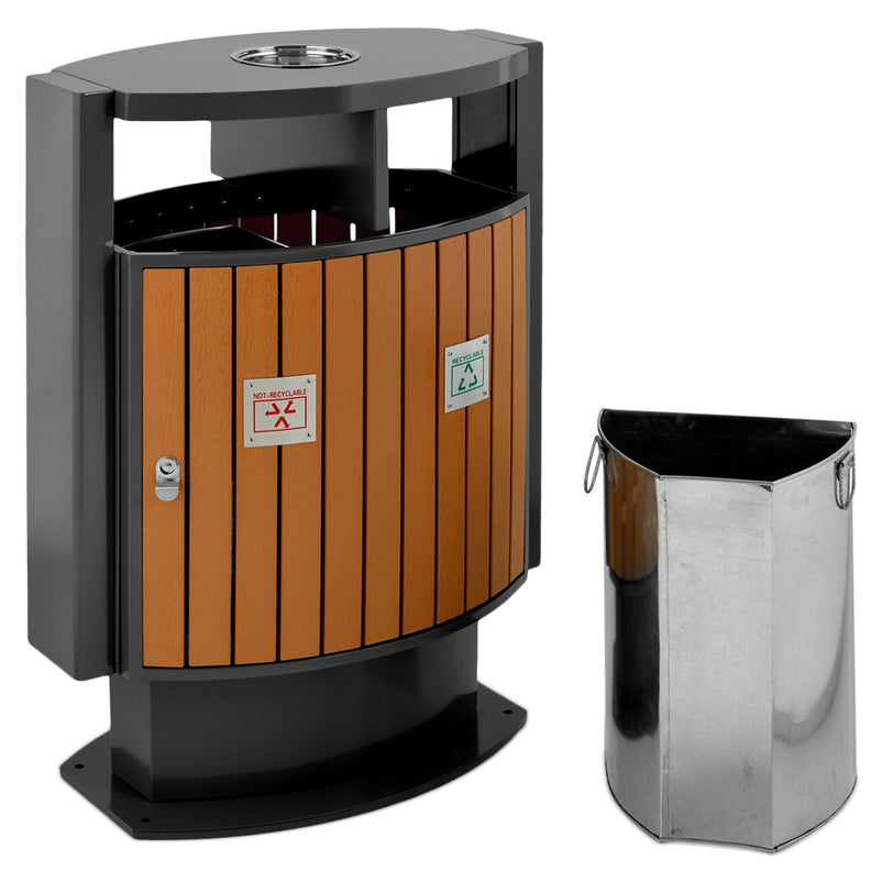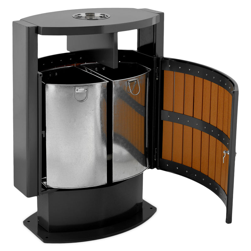 Coș de gunoi Garden. Cel mai important aspect în alegerea unui coș de gunoi constă în aspectul și funcționalitatea acestuia, iar cel din gama Garden este opțiunea ideală. Acesta are o cromatică versatilă, fiind chiar aspectuos. De asemenea, dimensiunile generoase ale acestuia îl fac alegerea perfectă în grădina voastră. În plus, coșul de gunoi are o parte pentru deșeuri reciclabile și una pentru cele nereciclabile, având etichete cu semnele aferente.