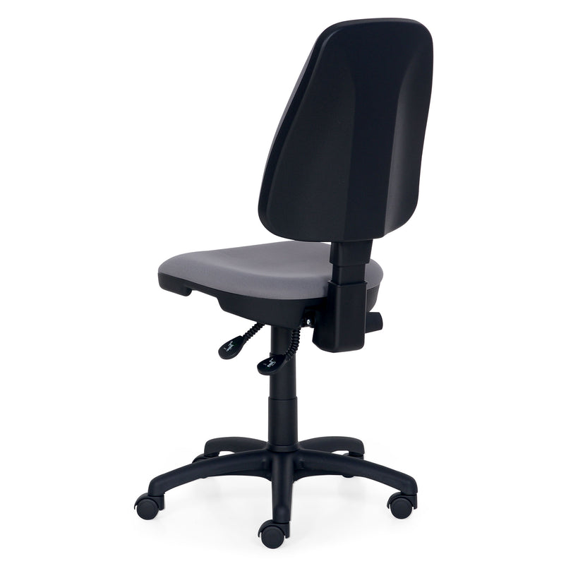 Scaun ergonomic birou Elegance. Cu bază mobilă, înălțime reglabilă și tapițat în stofă, scaunul operațional Elegance contribuie la amenajarea unui spațiu de lucru plăcut, dar mai ales, confortabil. Asigurând o postură comodă și sănătoasă, reprezintă alegerea perfectă pentru timpul îndelungat petrecut la birou.