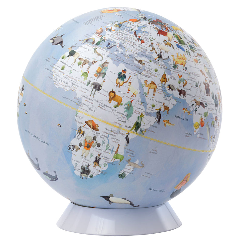 Glob pământesc Wildlife World. Baza detașabilă și globul din plastic, accesoriul din gama Lunar vă oferă o hartă realistă a lumii, fiind un accesoriu modern și funcțional în același timp. Acesta reprezintă o alegere perfectă pentru copii curioși ce doresc a învăța geografie și zoologie. Acesta este accesorizat cu o hartă ce oferă informații despre originile și migrarea animalelor, o hartă politică și o cartografie în limba engleză pentru ca cel mic să își dezvolte cunoștințele mult mai bine.