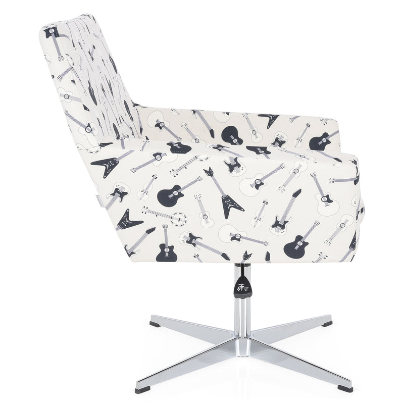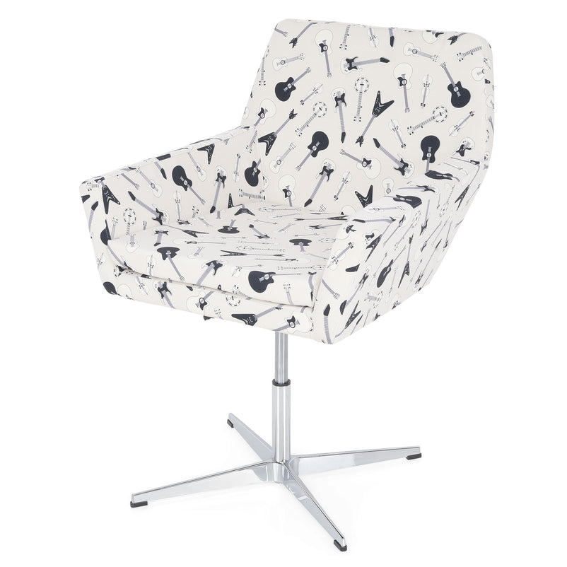 Fotoliu rotativ, stofă Engell. Colorat și imprimat creativ, fotoliul Engell este piesa versatilă de care aveți nevoie pentru o amenajare modernă și practică. Acesta poate fi utilizat atât ca un fotoliu clasic, cât și pentru a înlocui scaunul de birou în mod original. Aspectul deosebit al fotoliului Engell este dublat de latura practică. Tapițat în stofă, este rotativ și are o înălțime reglabilă, putând fi ajustat în funcție de nevoi.