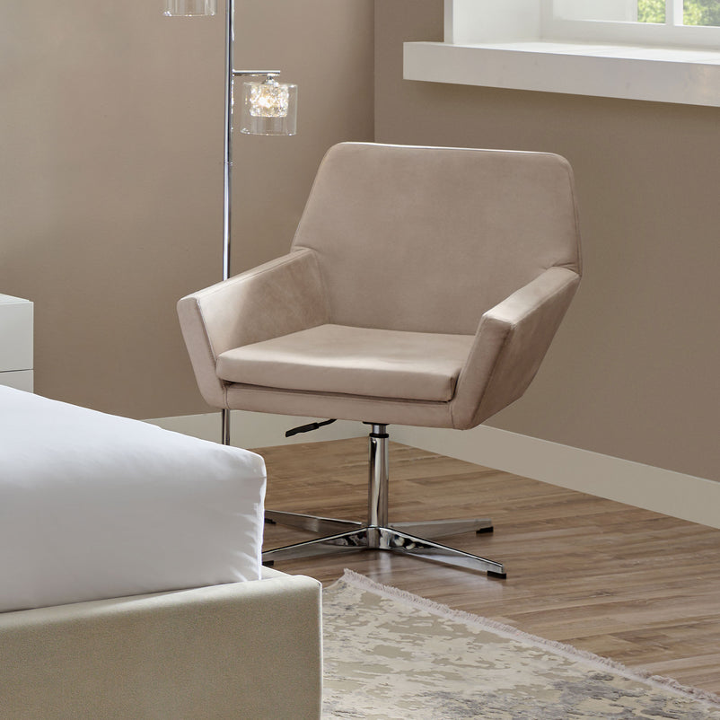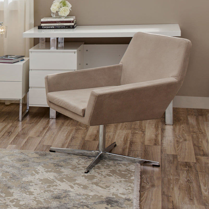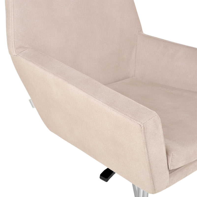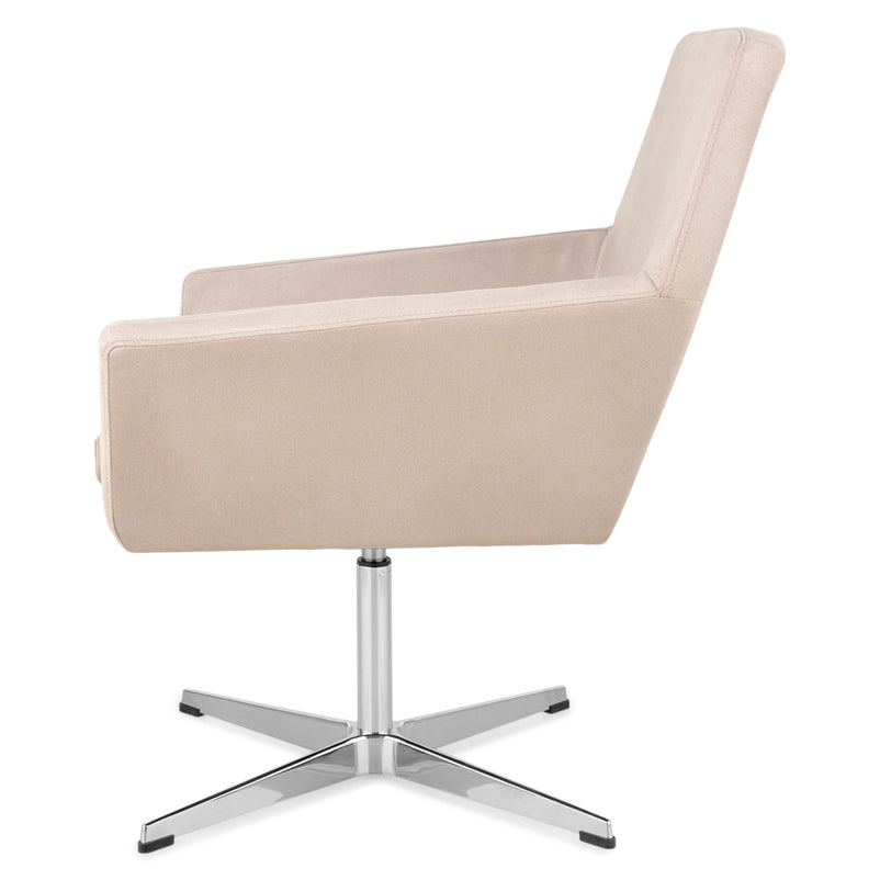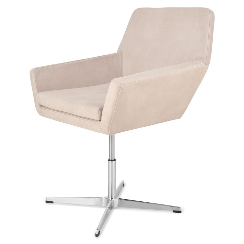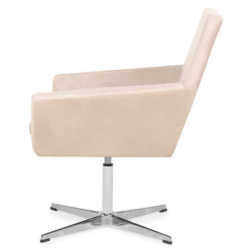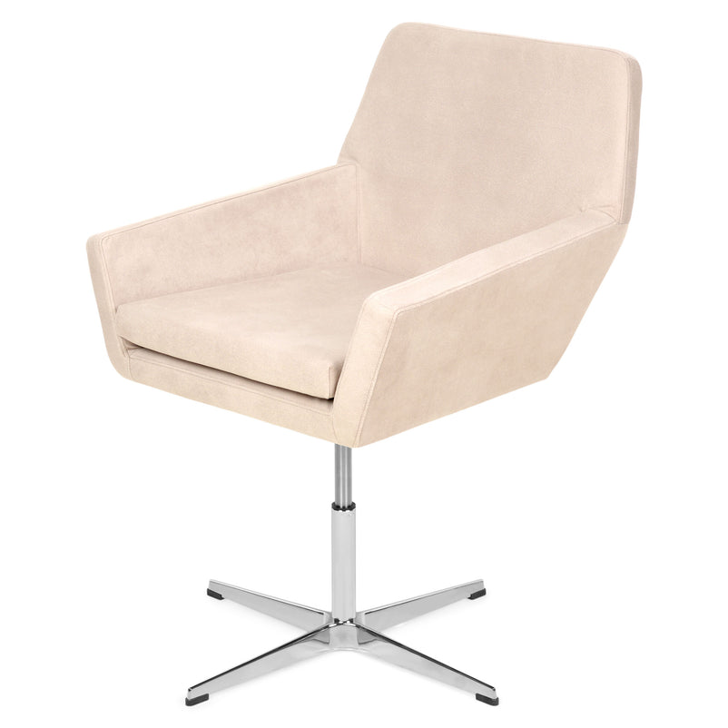 Fotoliu rotativ, stofă Engell. Fotoliul din gama Engell se remarcă prin designul modern care va aduce în livingul vostru un plus de stil modului în care ați amenajat spațiul. Fotoliul este tapițat în stofă alb și are forme generoase pentru momentele voastre de relaxare, în timpul petrecut acasă. Cromatica aduce interiorului un plus de veselie și căldură, contribuind la o ambianță plăcută. De asemenea, înălțimea acestuia se poate regla din maneta amplasată sub scaun.
