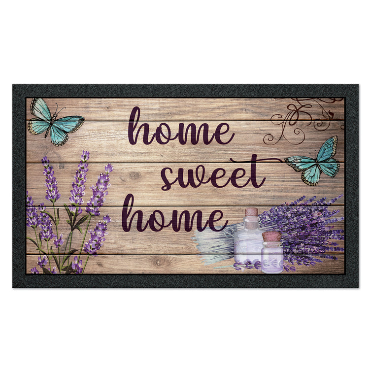 Covoraș intrare Lavanda. Covorașul de intrare antiderapant este fabricat din cauciuc și poliamidă, fiind rezistent la umezeală și mucegai. Datorită greutății sale apreciabile și a suportului anti-alunecare, covorul va rămâne mereu în poziție fixă. Este foarte ușor de curățat, astfel că puteți folosi chiar și în acest sens.