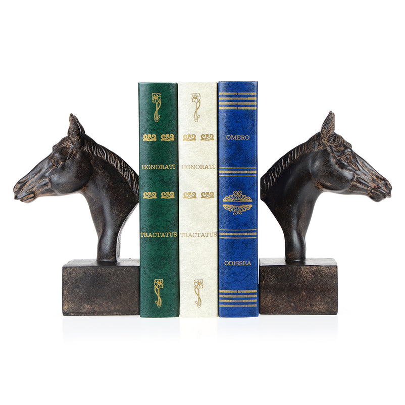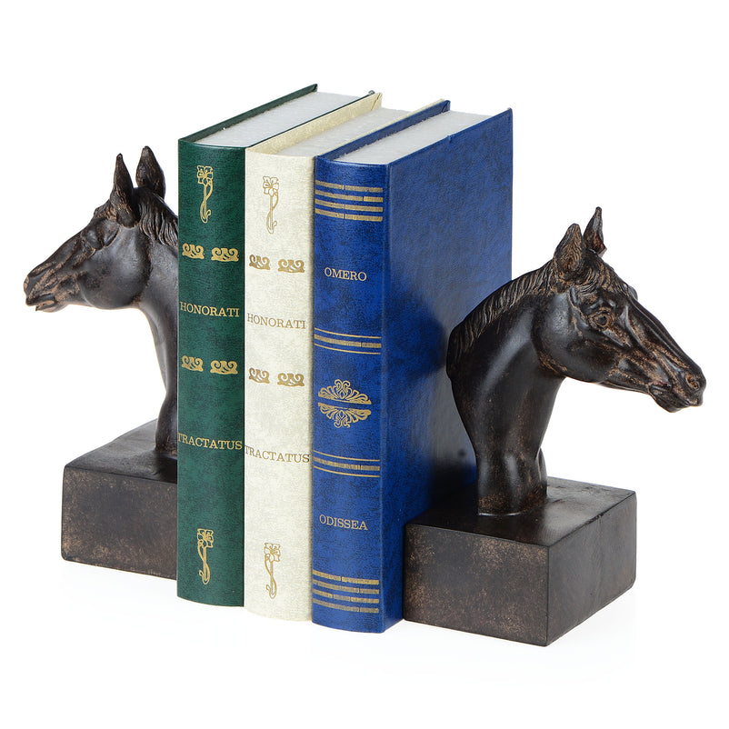 Set 2 suporturi cărți Horses. Pentru a sublinia un design clasic al bibliotecii voastre, setul de două suporturi pentru cărți este o alegere inspirată. În plus, setul este foarte practic, pentru a împiedica alunecarea cărților de pe polițele bibliotecii voastre.