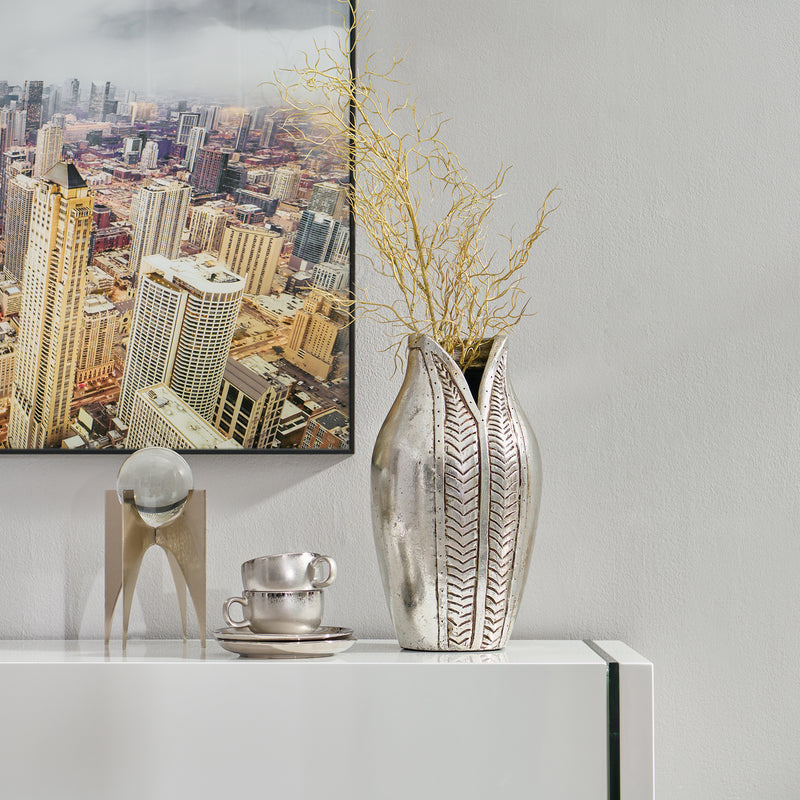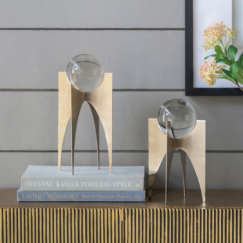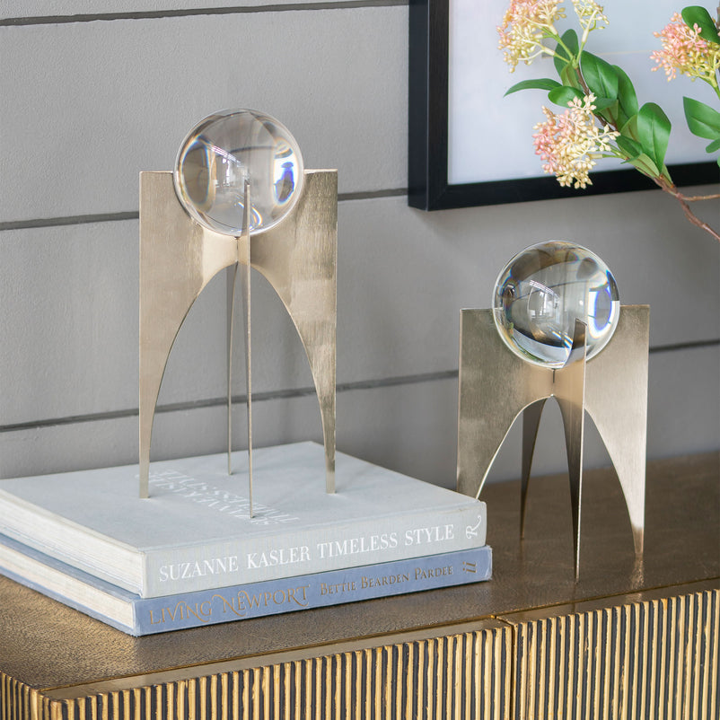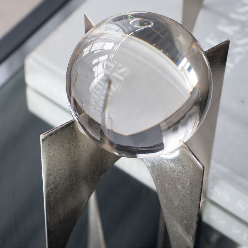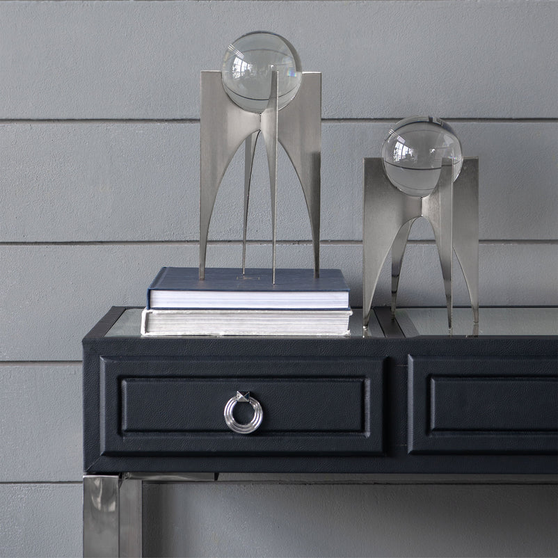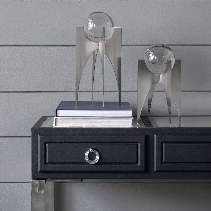 Set 2 decorațiuni Bergen. Decorați încăperea cu un obiect care va atrage, cu siguranță, privirile invitaților voștri, care se remarcă prin formele creative, de inspirație abstractă și care aduce un plus de dinamism atmosferei din camera voastră. Decorațiunea comunică echilibru prin contraste, fiind reprezentată prin suportul în forme stricte și incisive ale sferei delicate.