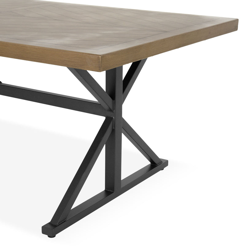 Masă exterior Chasewood. Masa Chasewood este realizată din structură solidă din oțel vopsită în câmp electrostatic, material ce îi oferă un plus de rezistență. Latura estetică este asigurată de îmbinarea armonioasă a materialelor și de finisajul vopsit patinat, iar pentru ca întreg timpul petrecut în compania celor dragi să fie de calitate, masa este prevăzută cu suport pentru umbrelă de soare. Integrați masa din gama Chasewood pentru a vă complete decorul exterior într-un mod estetic și funcțional.