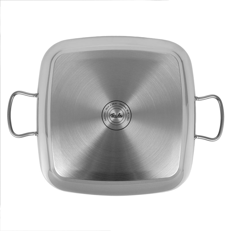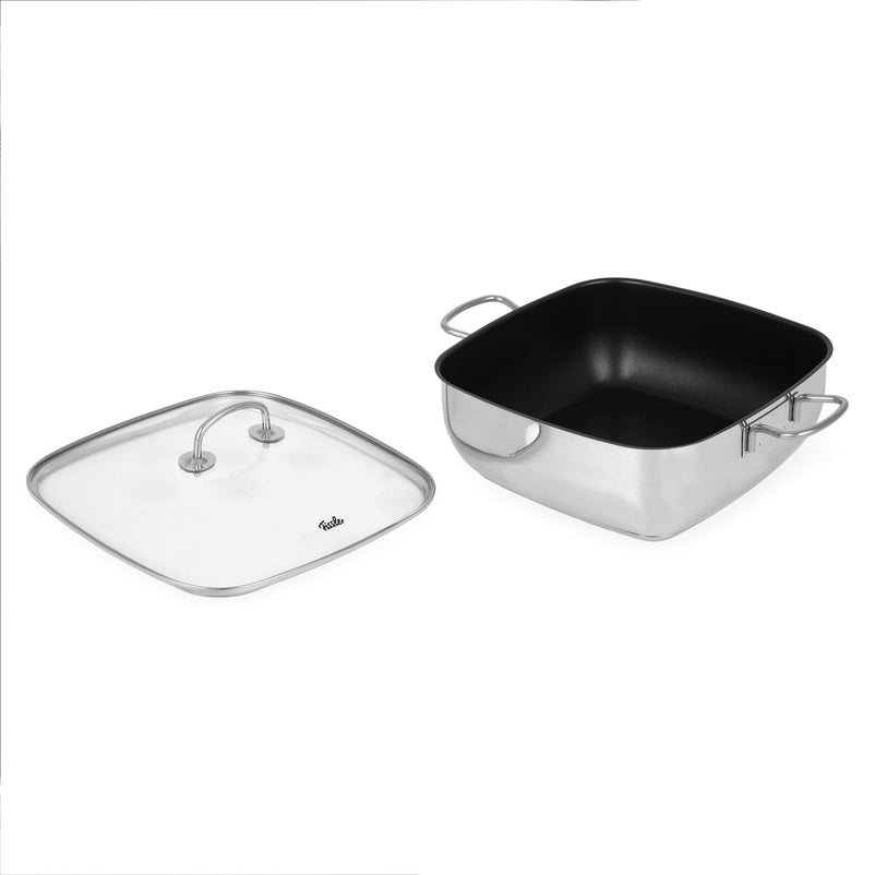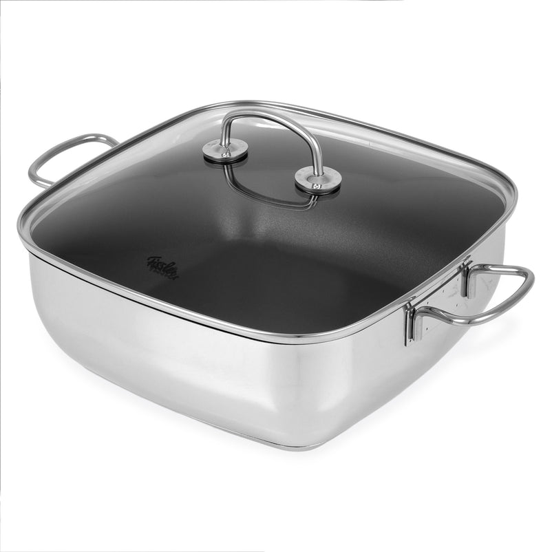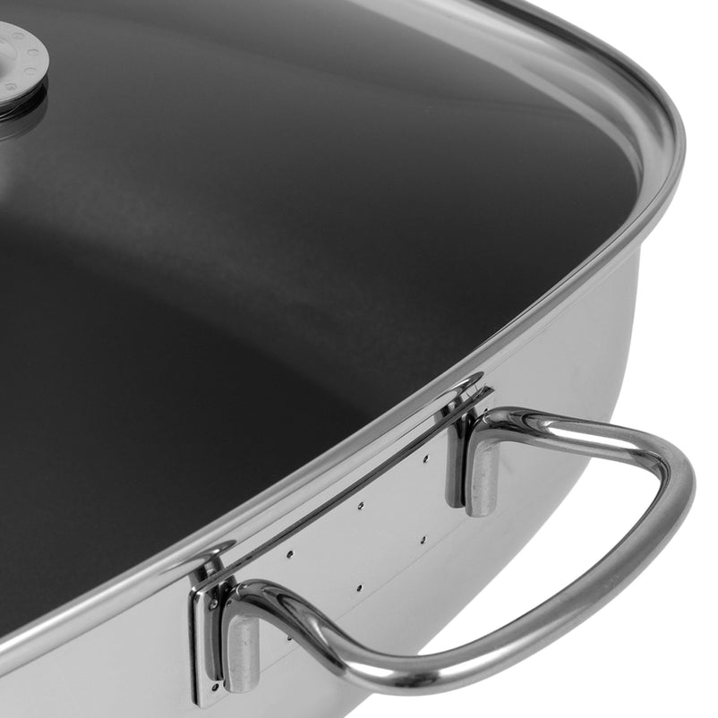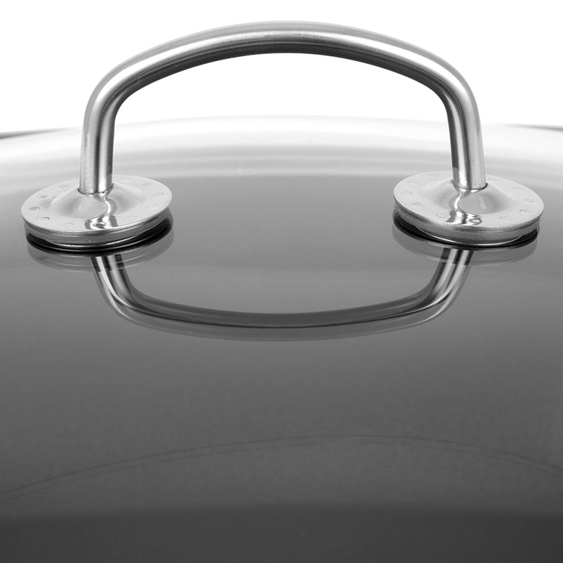 Oală cu capac, inox Secural. Mânerele metalice reci permit ridicarea și transportul ușor, chiar și în cazul conținutului greu și fierbinte.