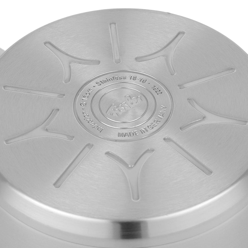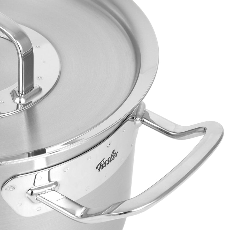 Set 3 oale Original Profi. Capacele metalice bombate asigură picurarea aburului condensat, făcând alimentele mai aromate și suculente. Mânerele metalice reci din inox garantează o temperatură de prindere plăcută la gătit și pot fi atinse fără suporturi. Bordul de turnare extra lat permite turnarea și decantarea precisă, fără picurare.