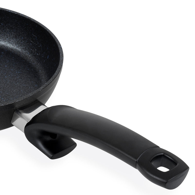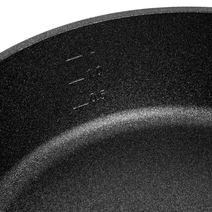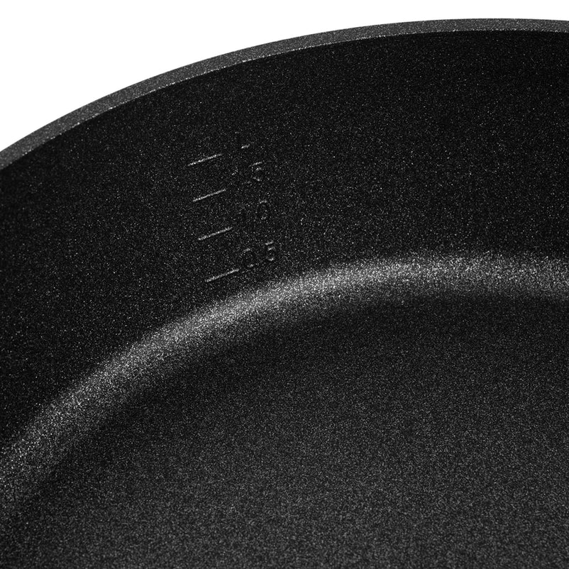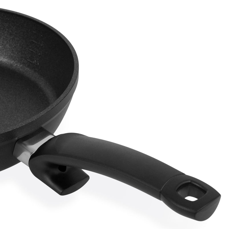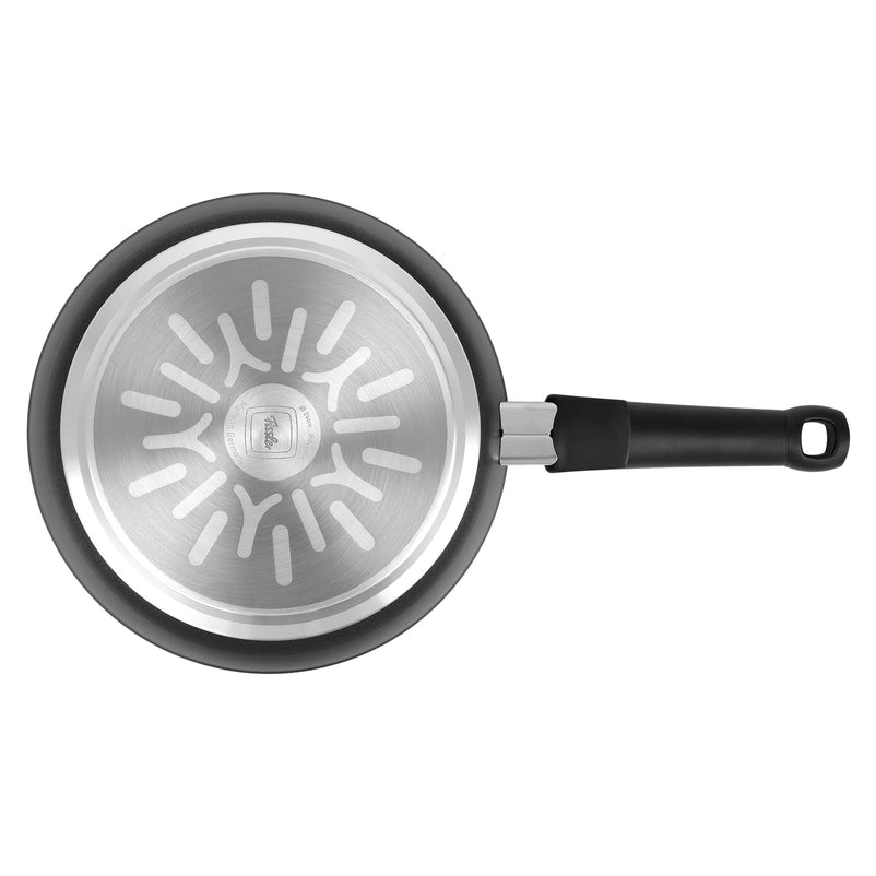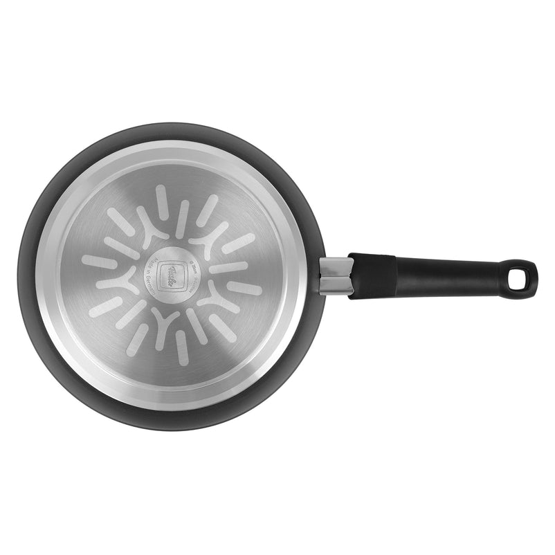Tigaie, aluminiu Adamant Comfort. Baza solidă a tigăii asigură absorbția, distribuția și stocarea optimă a căldurii și folosește energia în cel mai bun mod posibil.