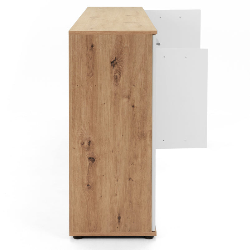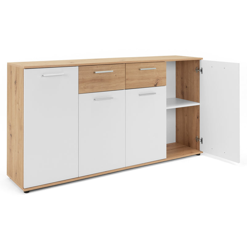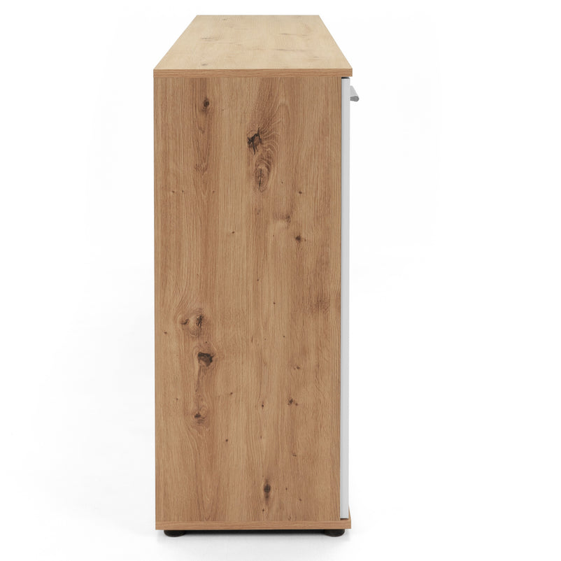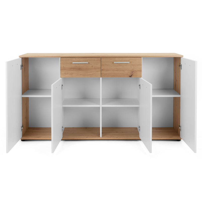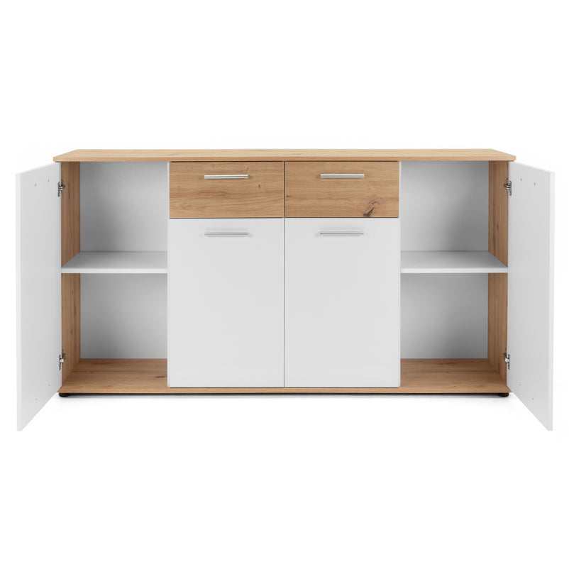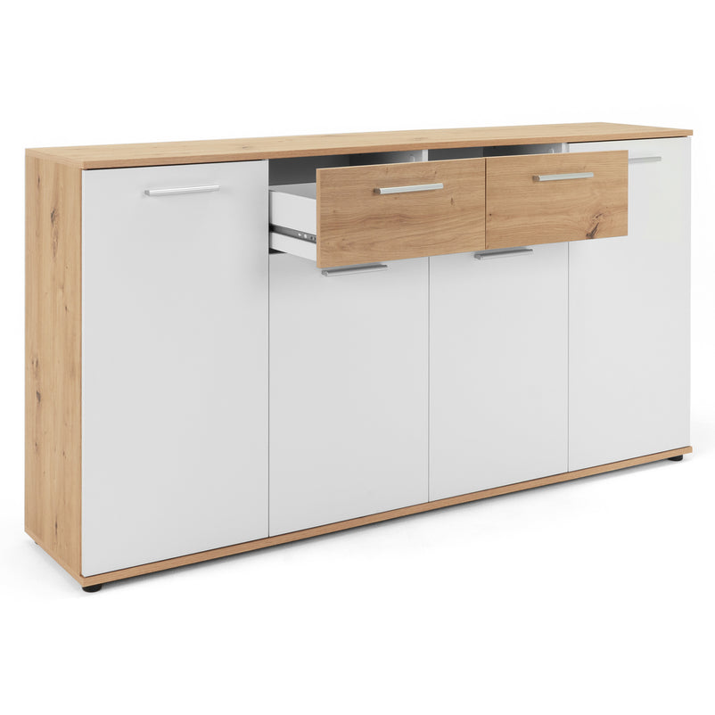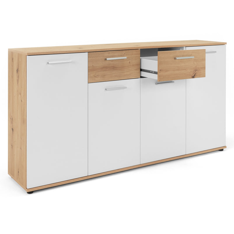 Comodă Livorno. Comoda din gama Livorno este o piesa modernă care contribuie la menținerea unui spațiu funcțional și estetic. Cu un design simplu și elegant, comoda este realizată din panouri aglomerate din lemn. Cromatica este contrastantă și pune în valoare piesa într-un mod unic. Aceasta este bine compartimentată, având numeroase spații pentru depozitarea lucrurilor necesare.