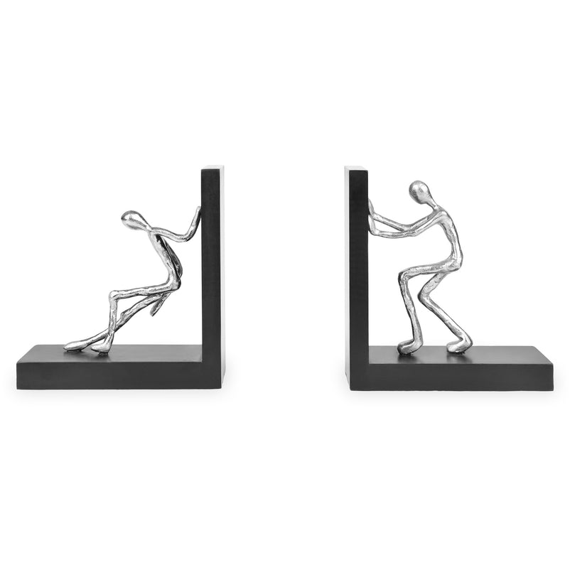 Set 2 suporturi cărți Man. Suporturile sunt ideale pentru a păstra cărțile în ordine, dar și din punct de vedere decorativ. Acestea ilustrează două figurine care susțin cărțile să nu cadă. Figurinele sunt rezistente, fiind realizate din aluminiu, și vor pune un zâmbet pe fața invitaților voștri.
