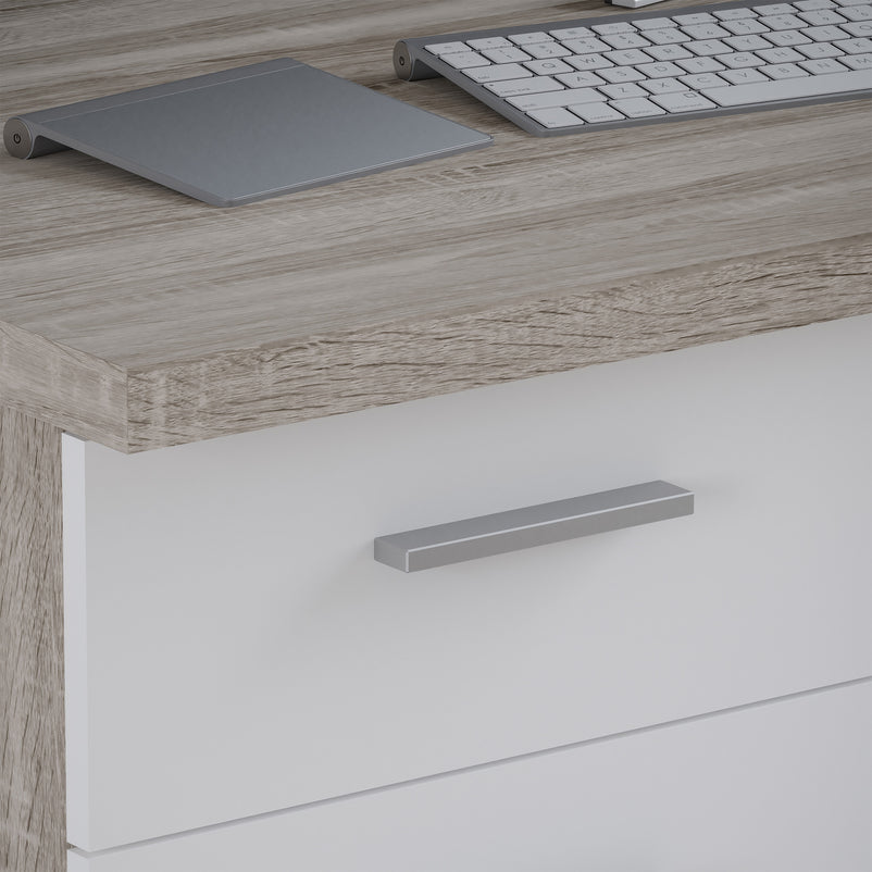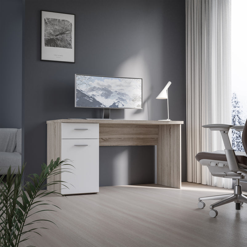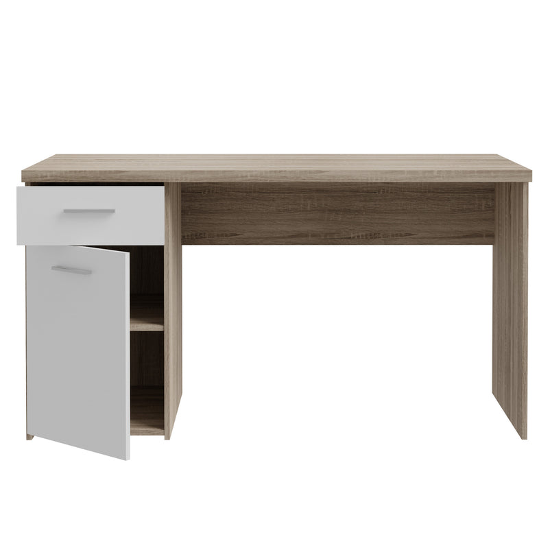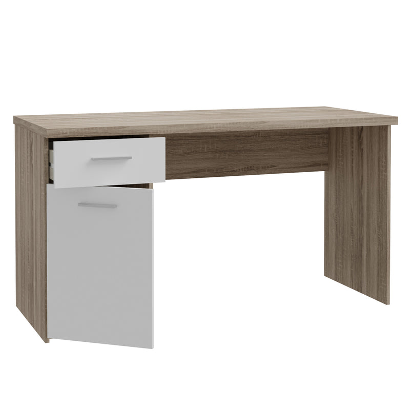 Birou copii, 1 sertar, 1 ușă Netty. Oferă un blat de lucru generos, pentru un studiu aprofundat, fiind dotat cu un corp cu ușă și 1 sertar de depozitare pentru rechizite. Încărcarea maximă suportată pe blat este de 20 kg. Biroul se distinge printr-un design modern, bicolor alb-stejar și este realizat din PAL cu acoperire celulozică finisat cu cant rezistent ABS. Mânerele sunt din plastic cu efect aluminiu, contrastând plăcut cu fronturile albe.