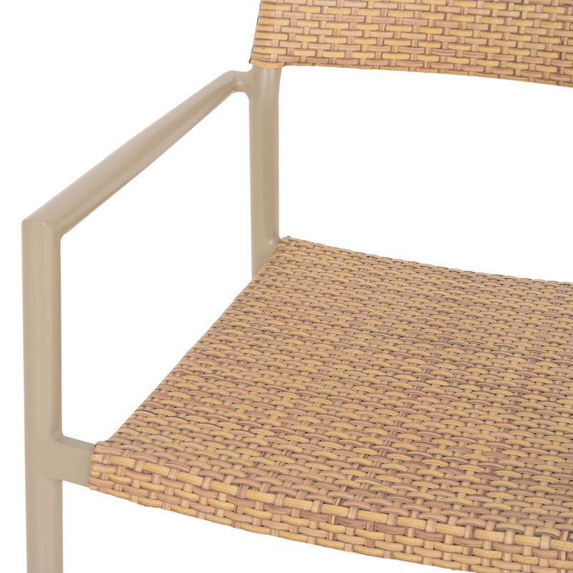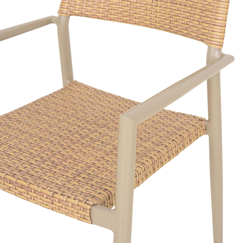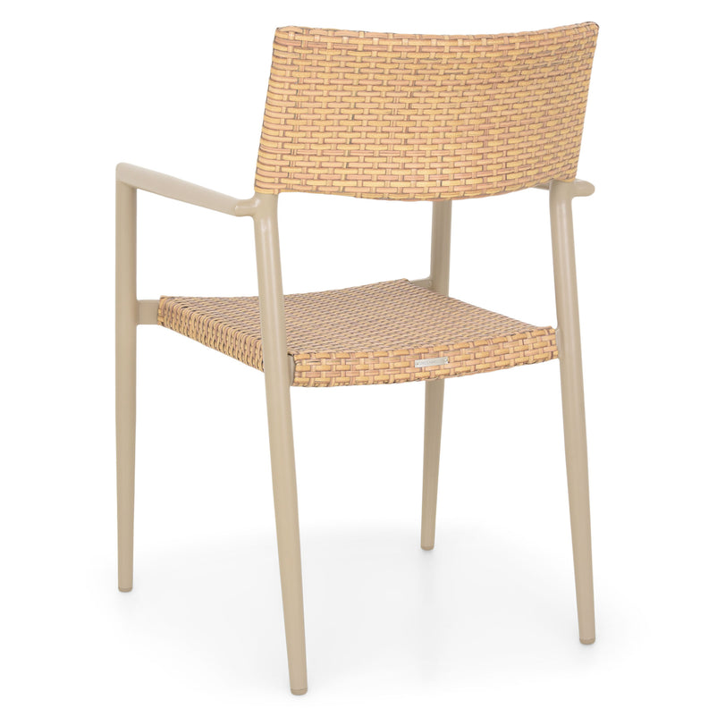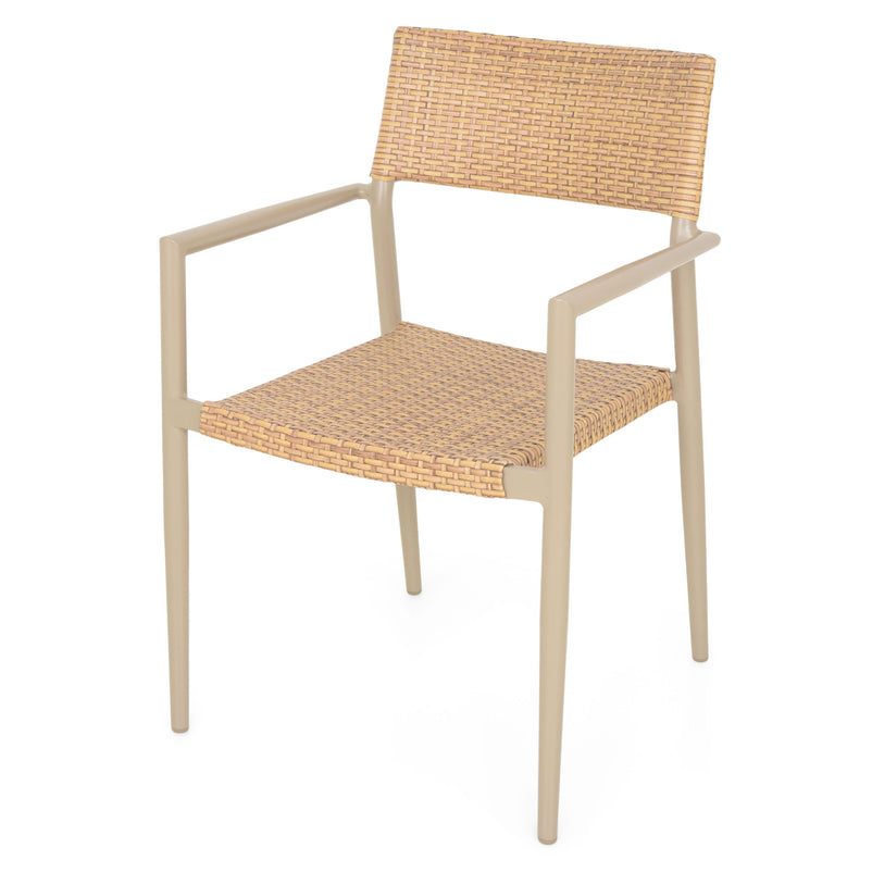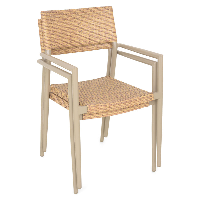 Scaun suprapozabil exterior Soria. Structura de aluminiu vopsită în câmp electrostatic și împletitura cu fibre sintetice ce imită ratanul vă oferă posibilitatea de a-l încadra în diverse decoruri exterioare. Bucurați-vă de momente de relaxare cu ajutorul acestuia și adăugați un plus de confort momentelor petrecute alături de cei dragi. De asemenea, fibrele sintetice sunt tratate împotriva razelor UV pentru păstrarea culorii vibrante pentru timp îndelungat.