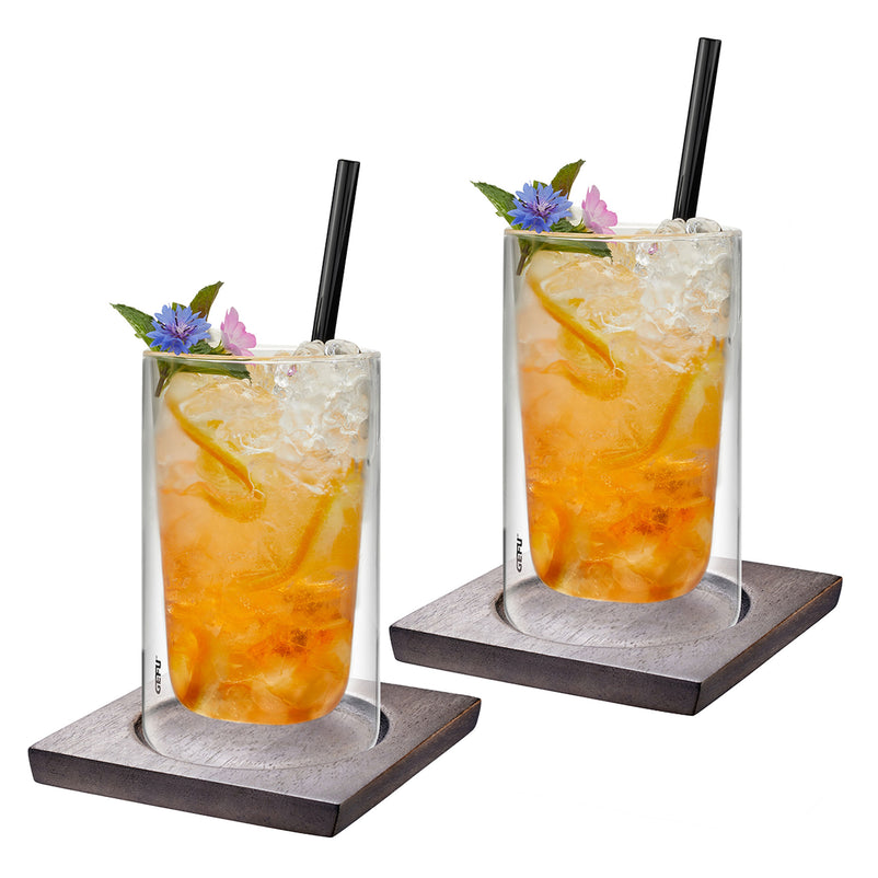 Set 2 pahare Mira. Indiferent că iubești ceaiurile, cafeaua, cappuccino sau cocktailurile impresionante, paharele Mira creează un adevărat aranjament. Pereții dublii și sticla borosilicată mențin băuturile reci sau fierbinți timp îndelungat și puteți ține relaxați paharul în mână oricât doriți deoarece sticla nu își schimbă temperatura. Paharele Mira sunt rezistente la temperaturi de până la 100 grade.