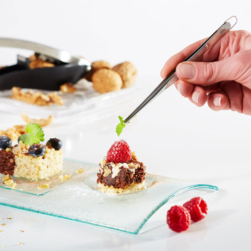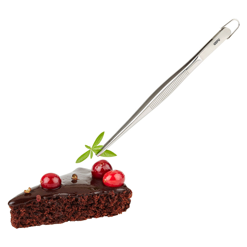 Pensetă bucătărie Preciso. Penseta Preciso este ideală pentru aplicarea decorațiunilor delicate pe deserturi. Are vârfurile rotunjite și este special proiectată pentru a asigura aderență, fără a deteriora decorațiunile. Este realizată din inox, fiind o ustensilă rezistentă în colecția din bucătaria voastră.