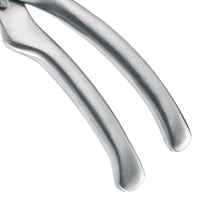 Foarfecă bucătărie Trincia. Această foarfecă este ideală pentru porționarea tuturor tipurilor de carne de pasăre, oferind o tăiere eficientă și fără efort. Forma ergonomicã a mânerelor asigură o prindere sigură și confortabilă, facilitând utilizarea. Pentru o curățare ușoară, foarfeca poate fi demontată, iar mecanismul de blocare integrat permite depozitarea în siguranță. Construcția robustă garantează durabilitate și performanță pe termen lung. Un accesoriu esențial în bucătărie!