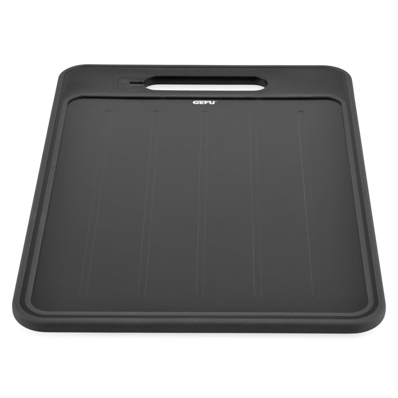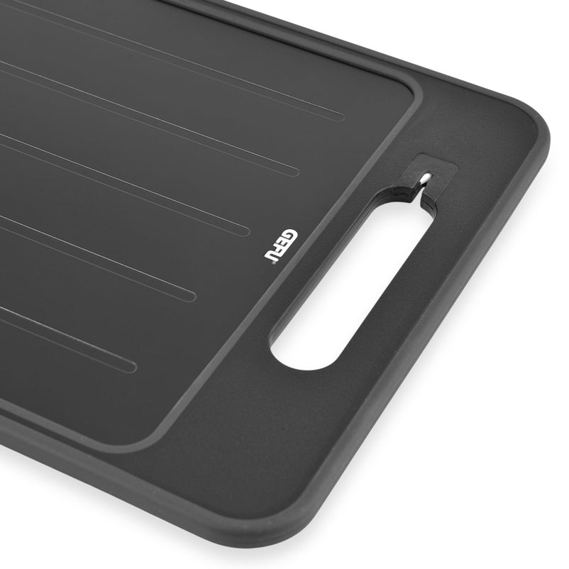 Suport de dezghețat și tocat Cut Pro. Dezghețare rapidă și tăiere sigură – inovativul cut pro îndeplinește ambele funcții. Partea sa elegantă din aluminiu negru reduce timpul de dezghețare al alimentelor congelate cu până la 60%, fără a afecta gustul sau calitatea. Partea de tăiere, realizată din plastic durabil, este extrem de rezistentă la alunecare, garantând siguranța în timpul tăierii.