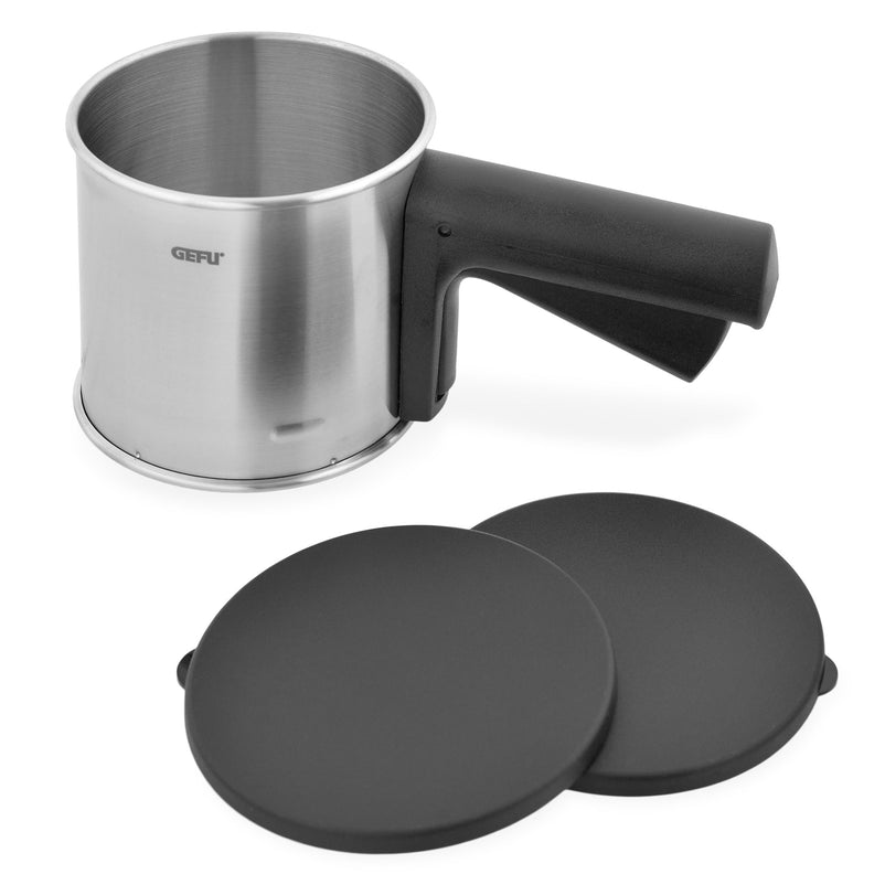 Capacele de protecție de pe ambele părți previn umezeala și permit depozitarea imediată după utilizare. Designul ergonomic și sistemul de dozare simplu, acționat cu o singură mână, fac ca fiecare utilizare să fie comodă și eficientă. Cu o capacitate de 400 g făină sau 300 g zahăr pudră, sita SIVA este un accesoriu indispensabil în orice bucătărie!